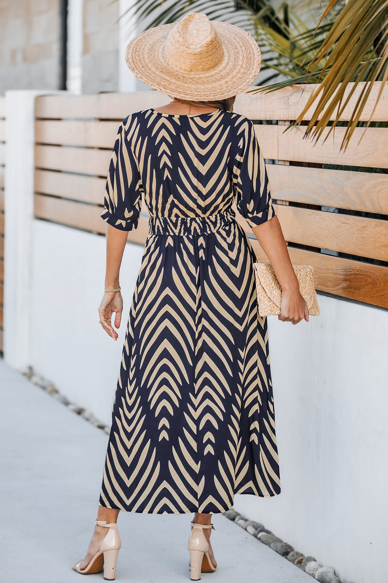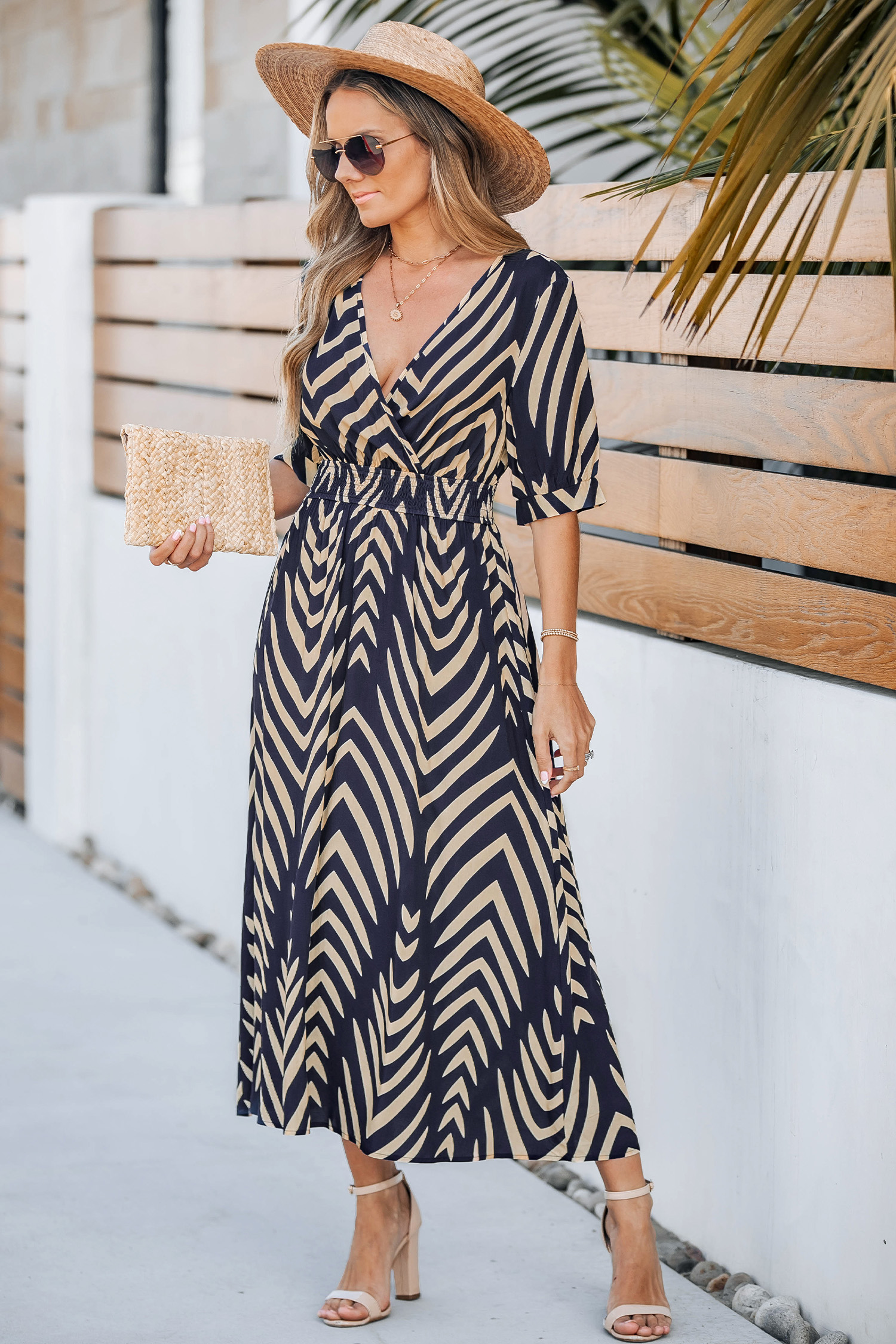 ThuisAbstracte palm overslag korte mouw midi-jurk