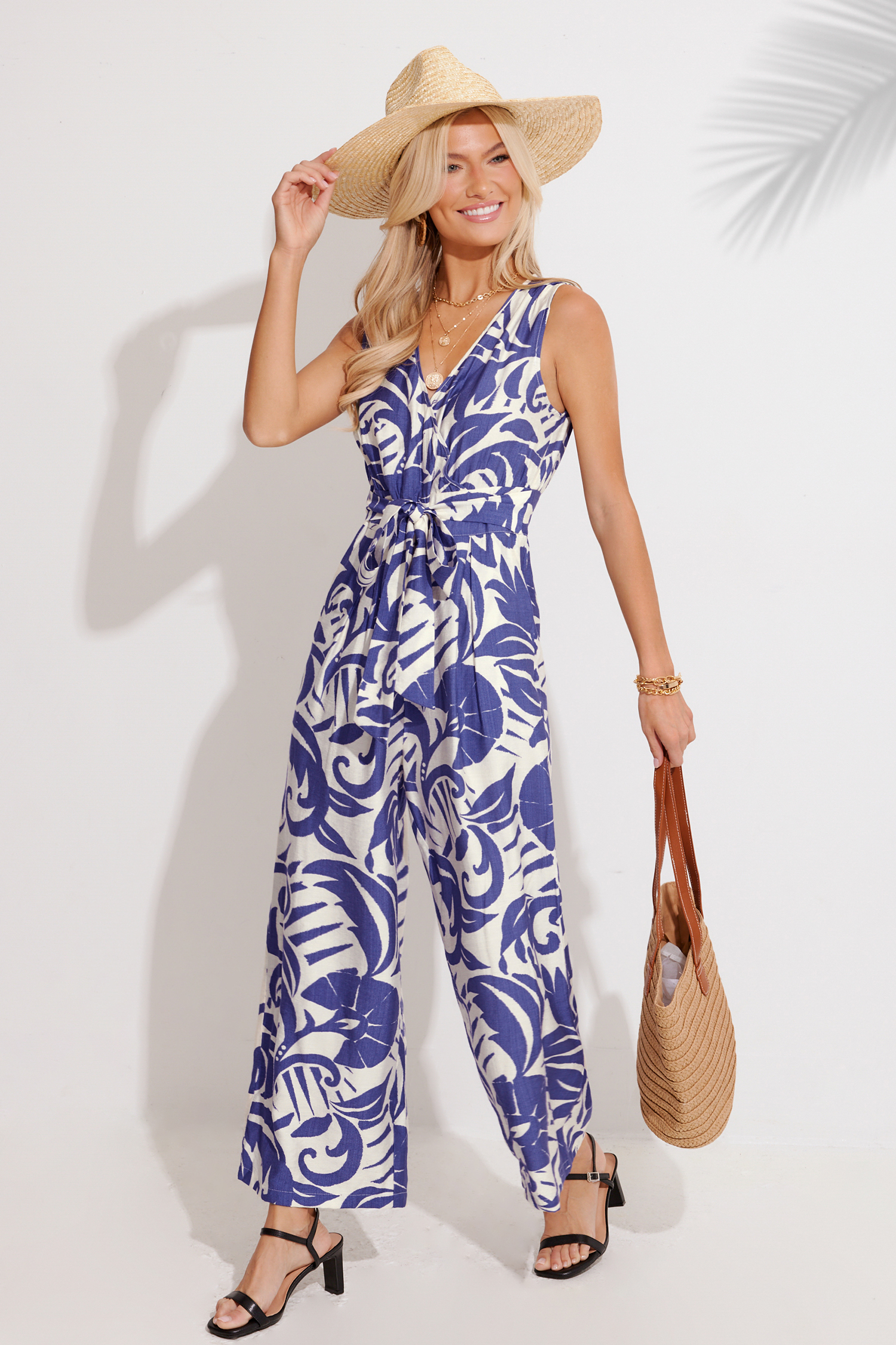 Azure Palms Surplice Jumpsuit met Wijde Pijpen