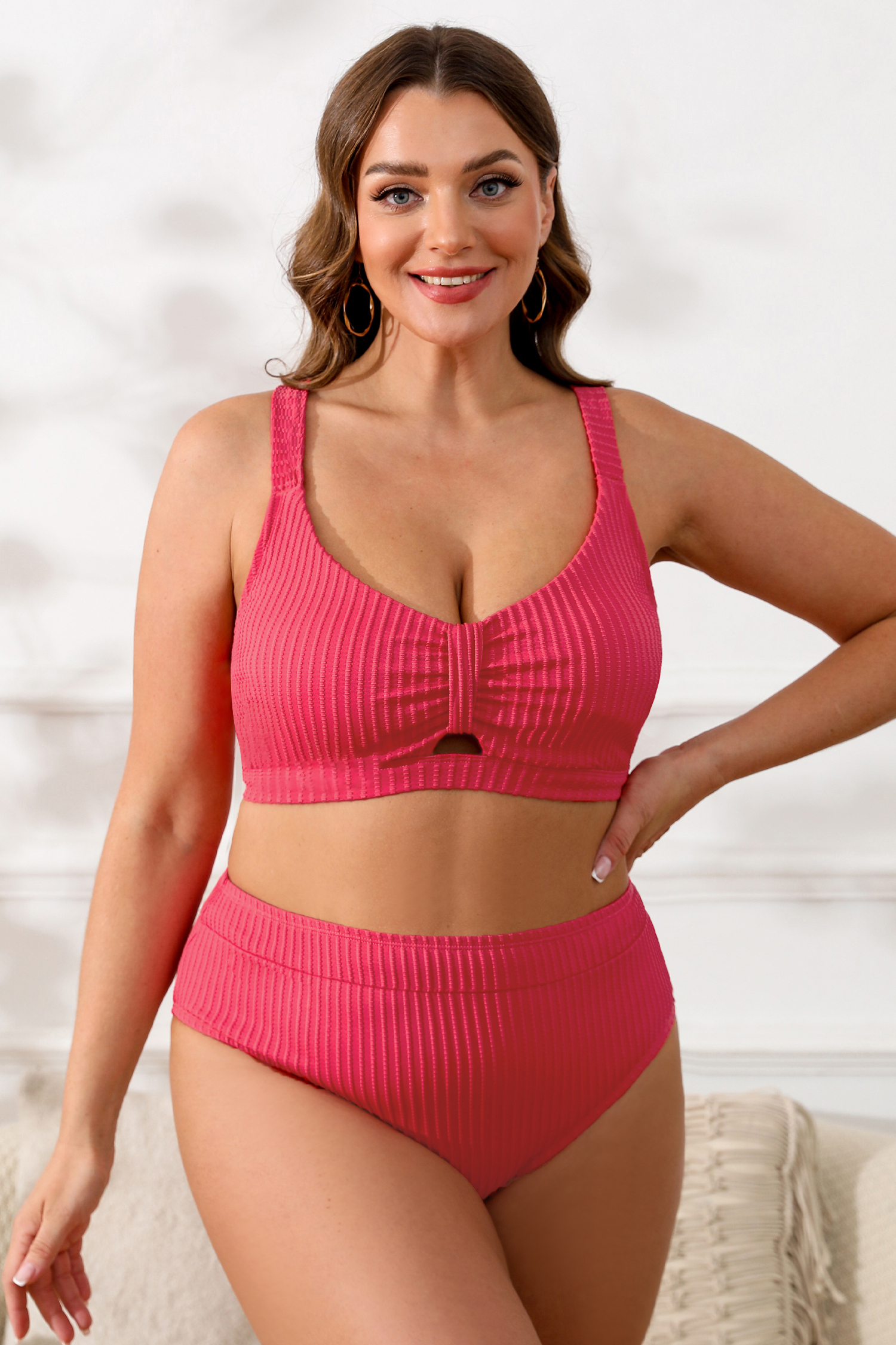 Wine Rib DD+ bikinitop en broekje met bandjes