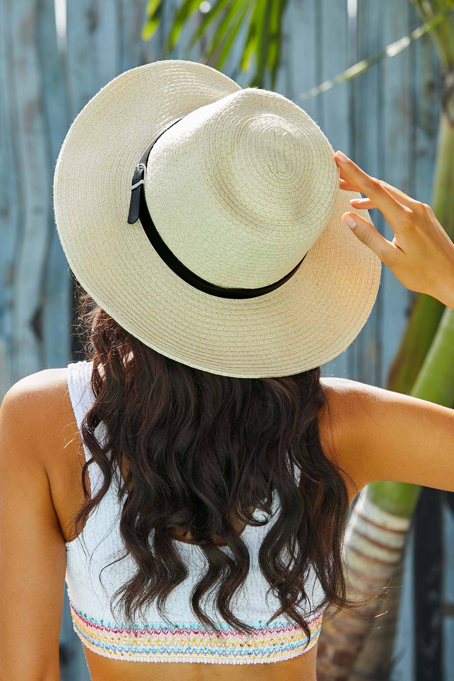 Beige strohoed met brede rand