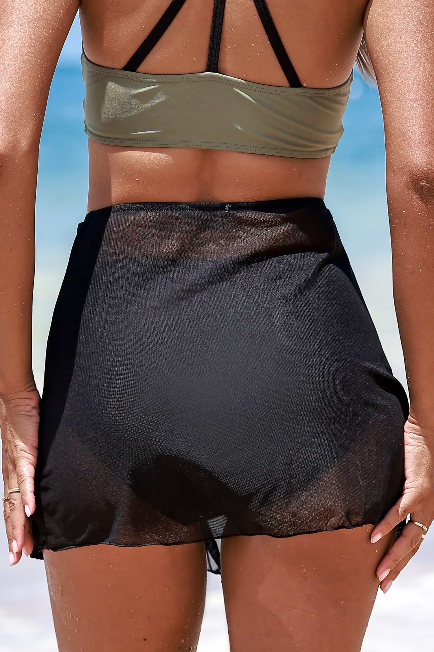 Zwarte zwemrok van mesh met hoge taille