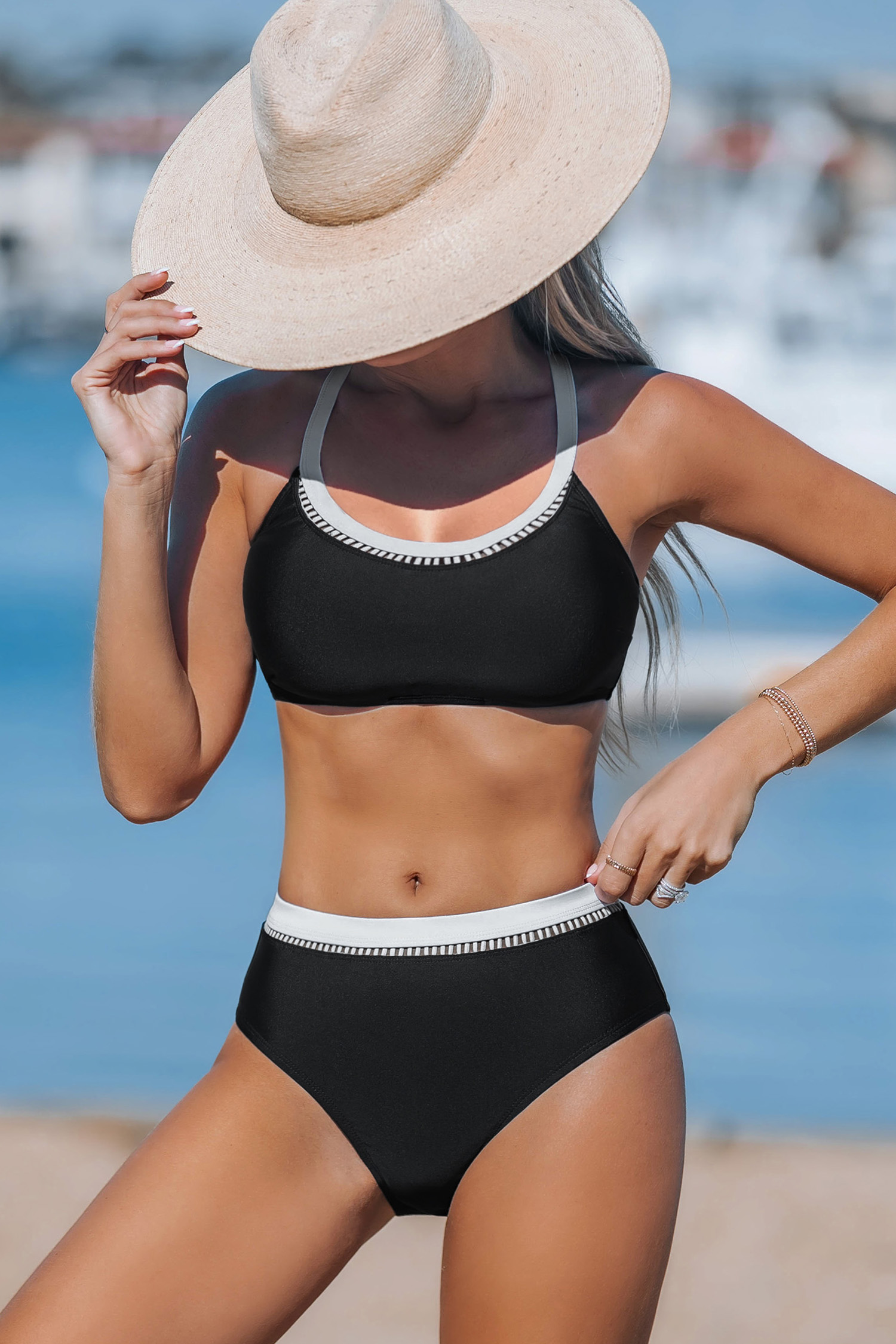 Zwarte set met ronde hals en bralette bikinitop en high-rise broekje