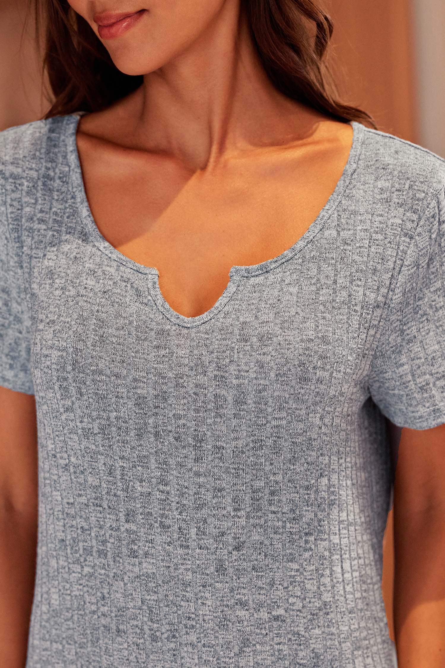 Blauw geribbeld nachtjapon met korte mouwen