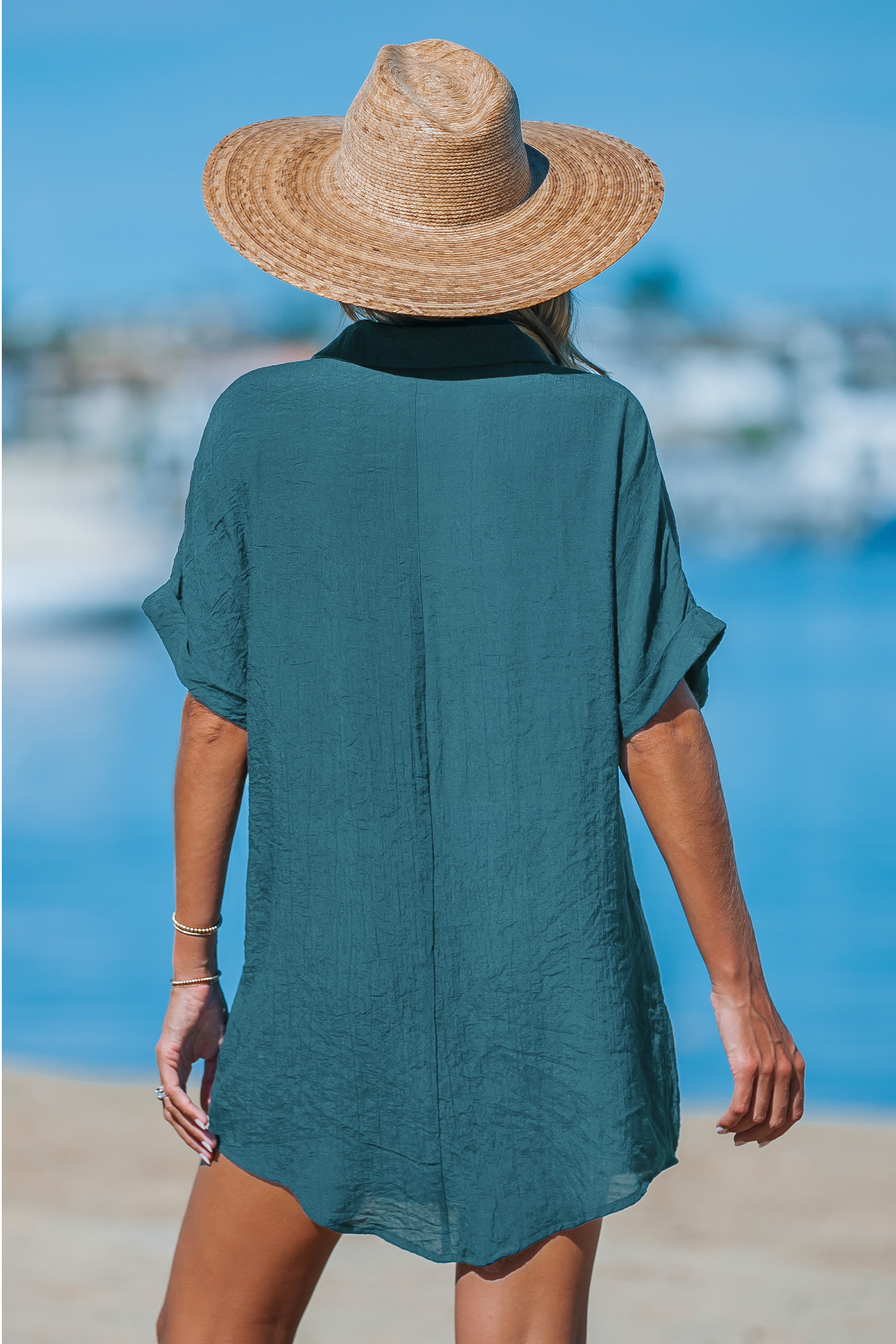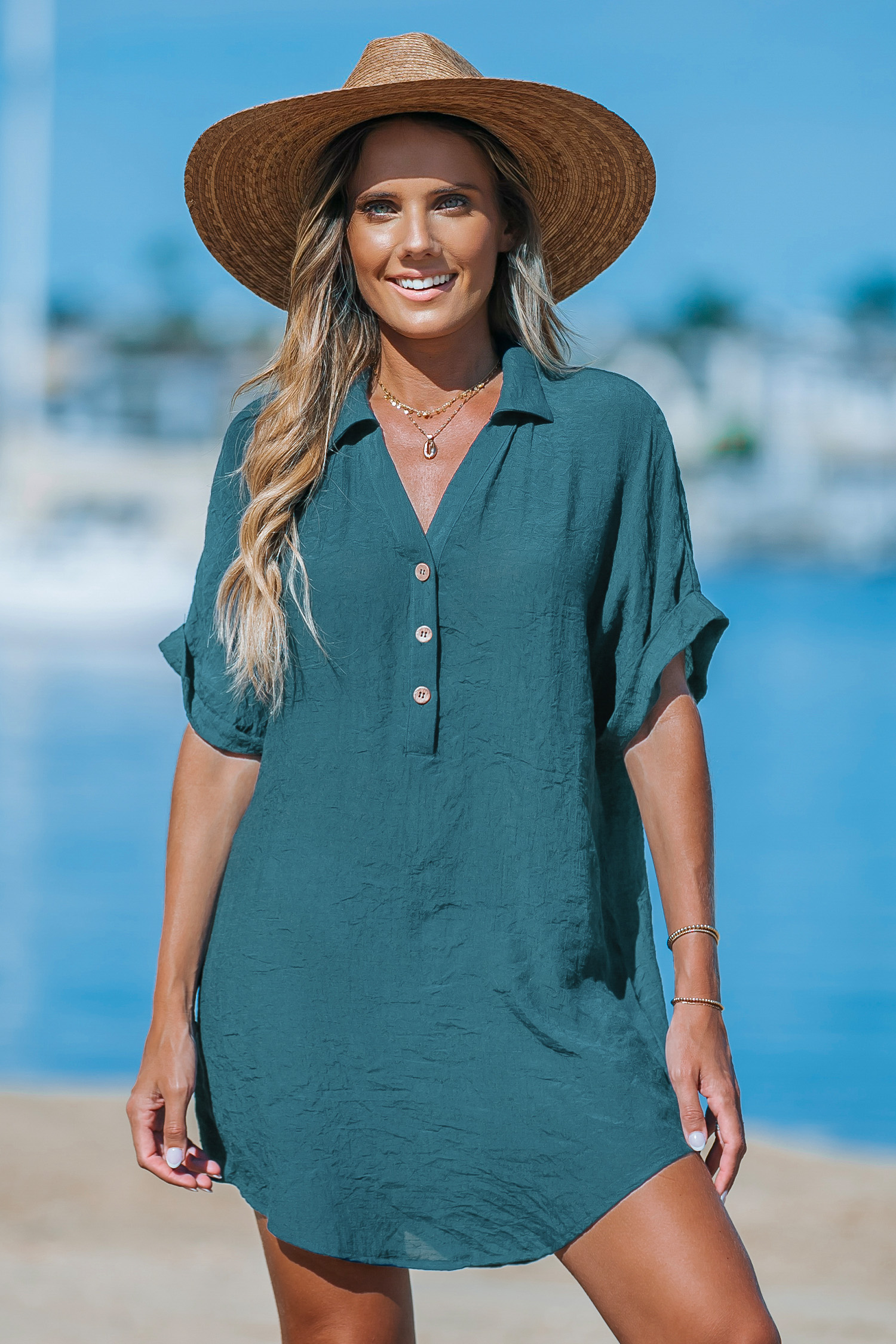 ThuisBlauwe korte mouw cover-up mini-jurk