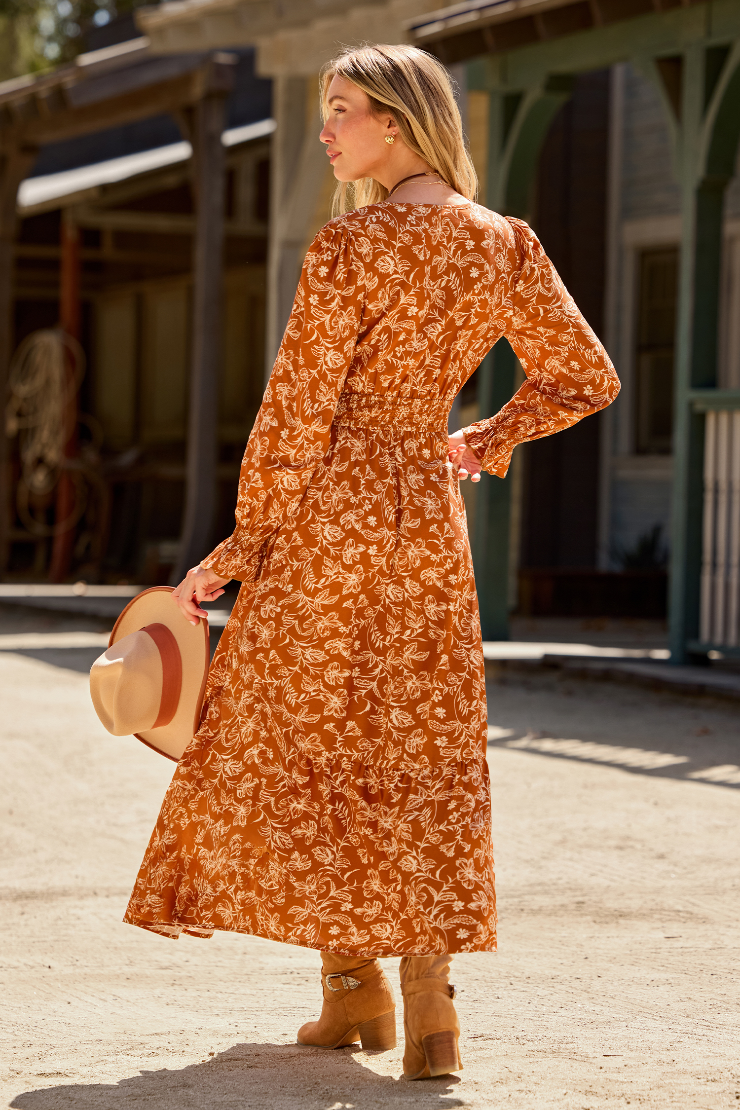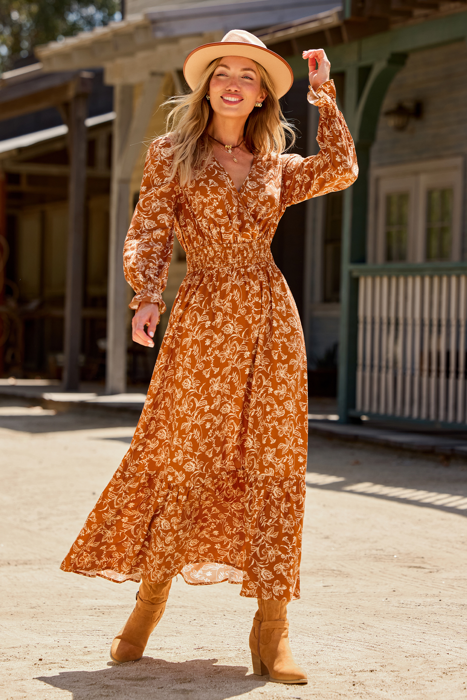 De Boho Babe Floral Maxi-jurk brengt een zorgeloze vibe met een vrouwelijke twist! De overslaghals en lange mouwen zorgen voor een flatterend effect, terwijl de gesmokte details en maxi-lengte zorgen voor een zwierige boho-look.