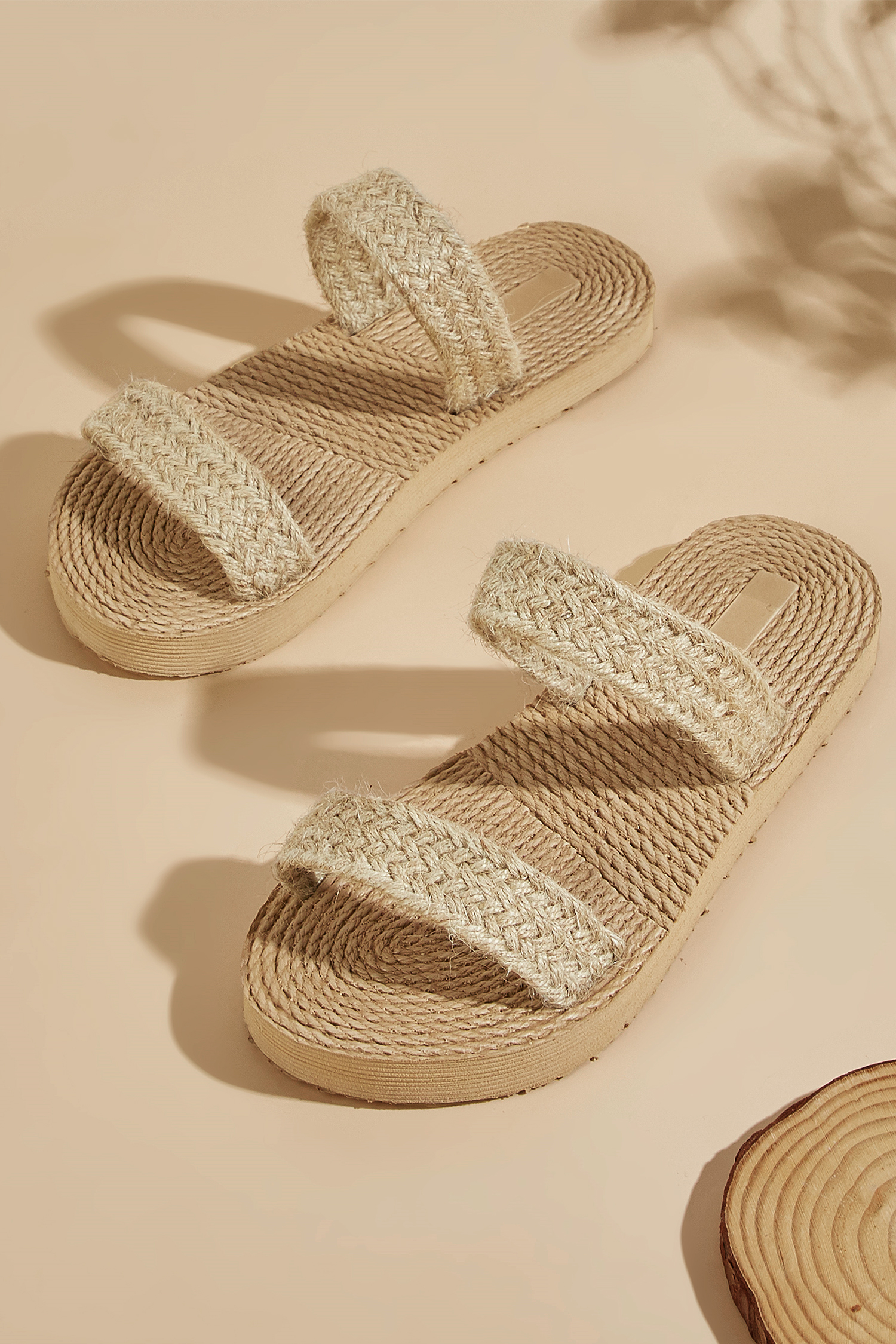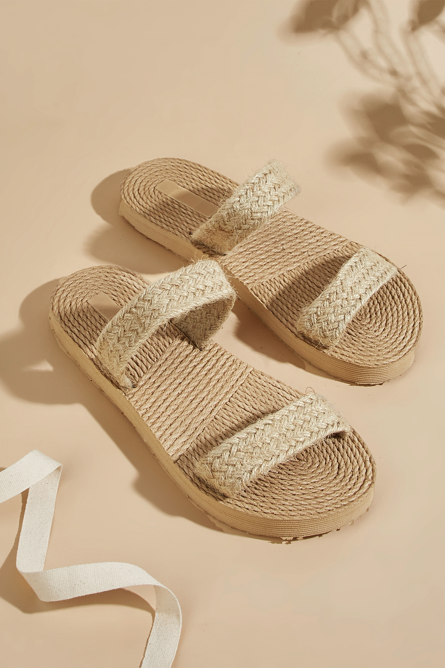 ThuisInstapsandalen van gevlochten jute met dubbele band