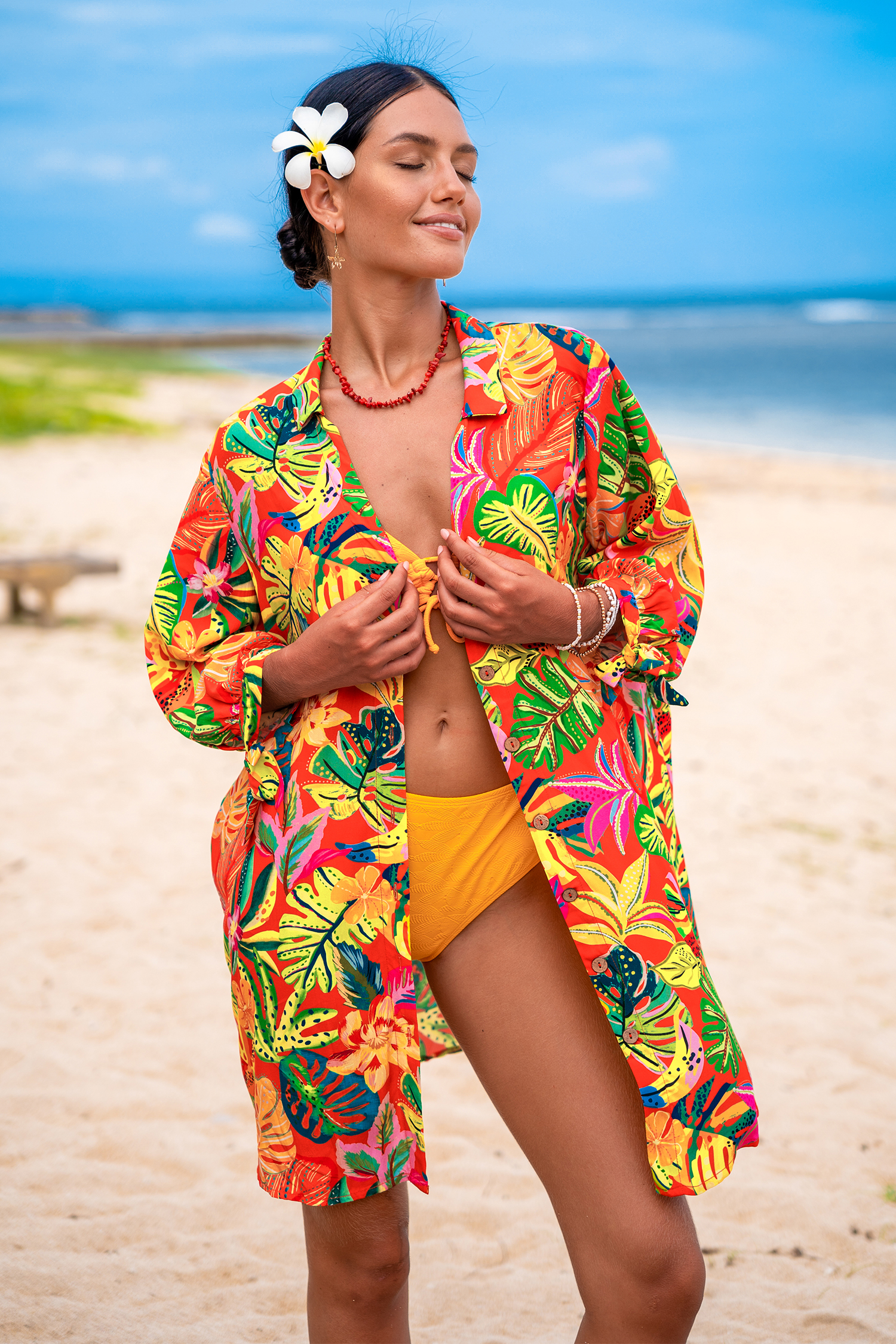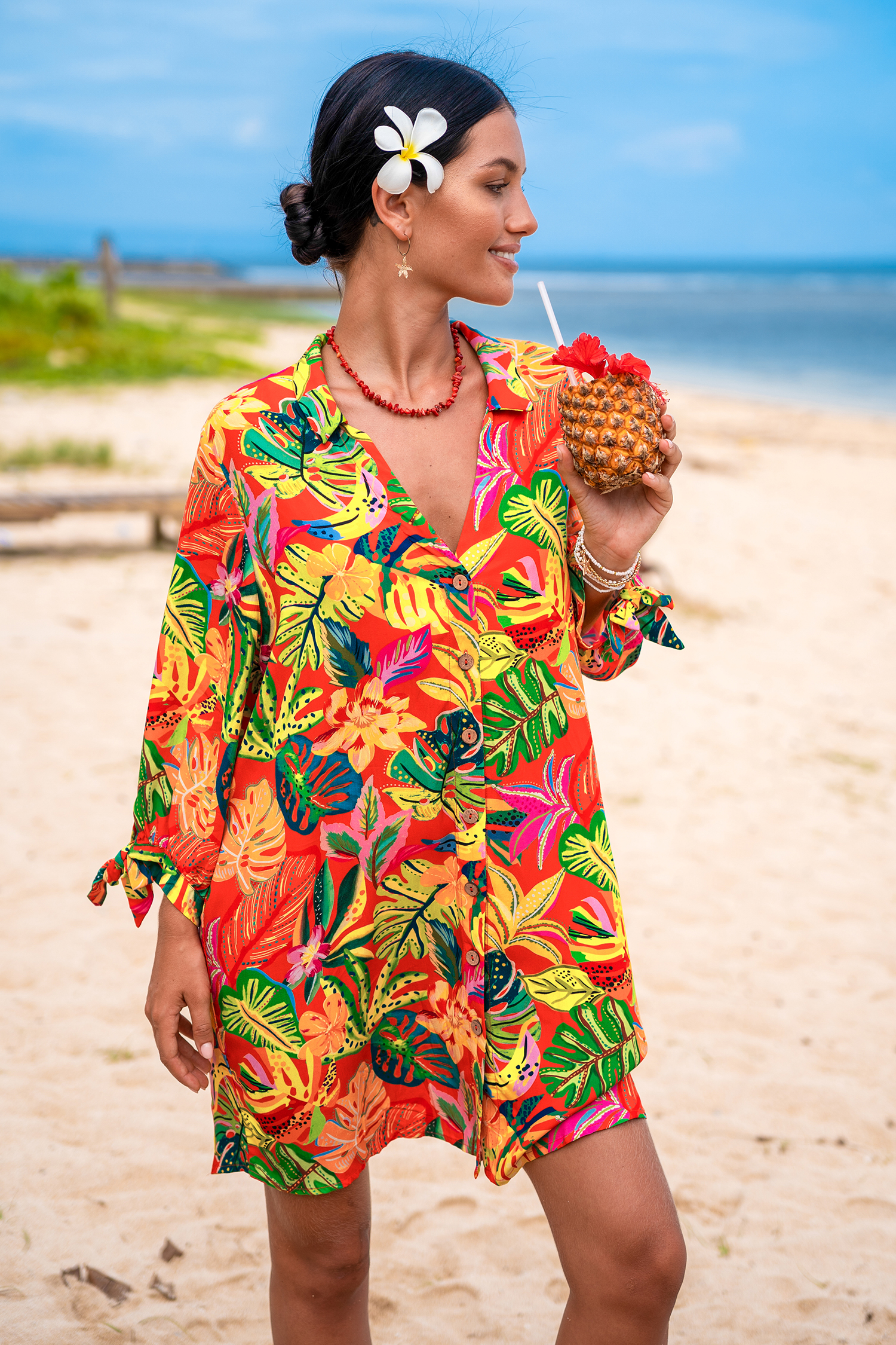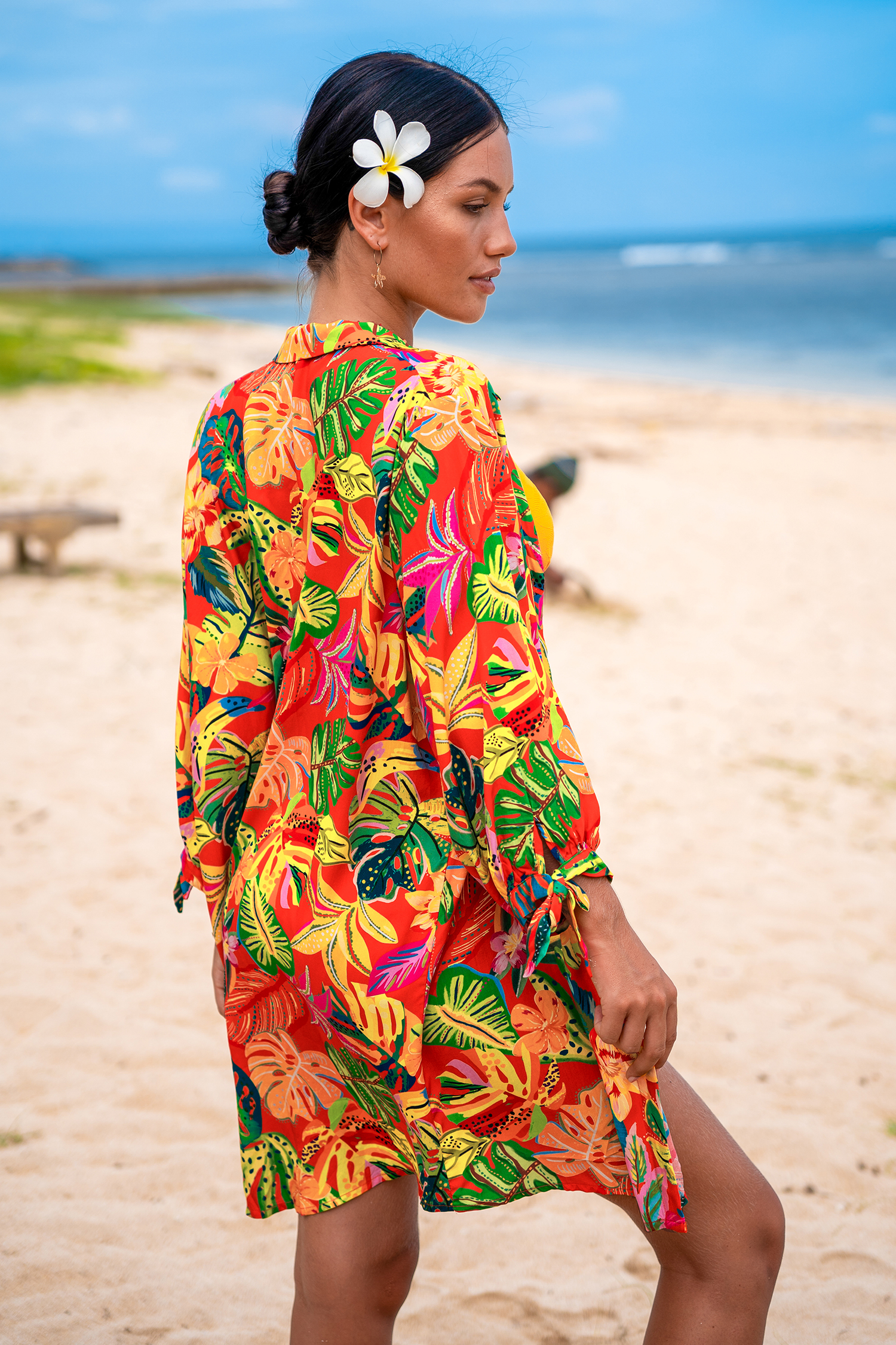 ThuisHeldere tropen-gekraagde cover-up met knopen