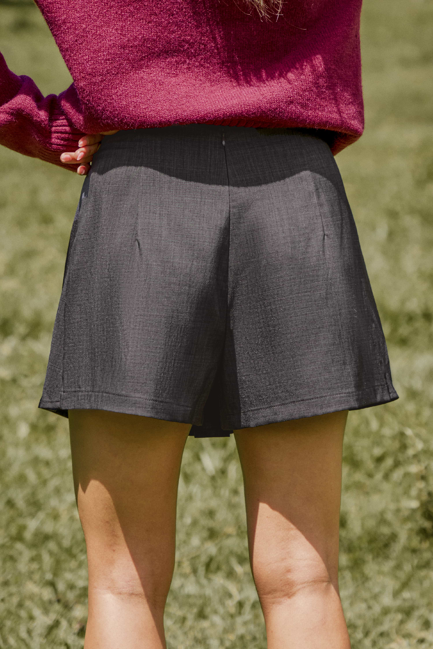 Houtskoolgrijze geplooide uitlopende broekspijpen met strik