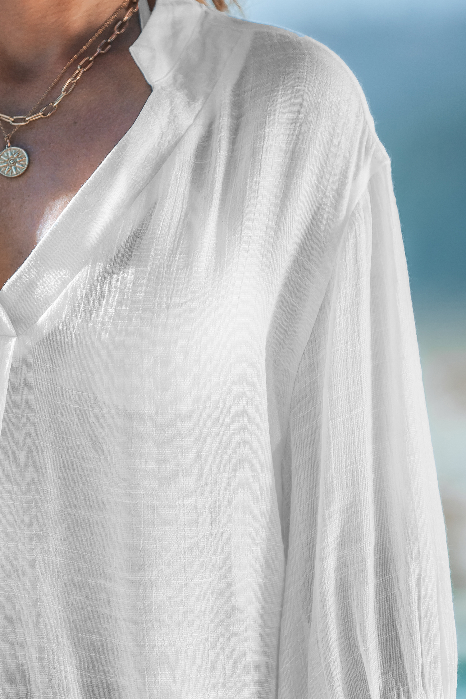 ThuisCover-up top met kraag en V-hals met blousonmouwen