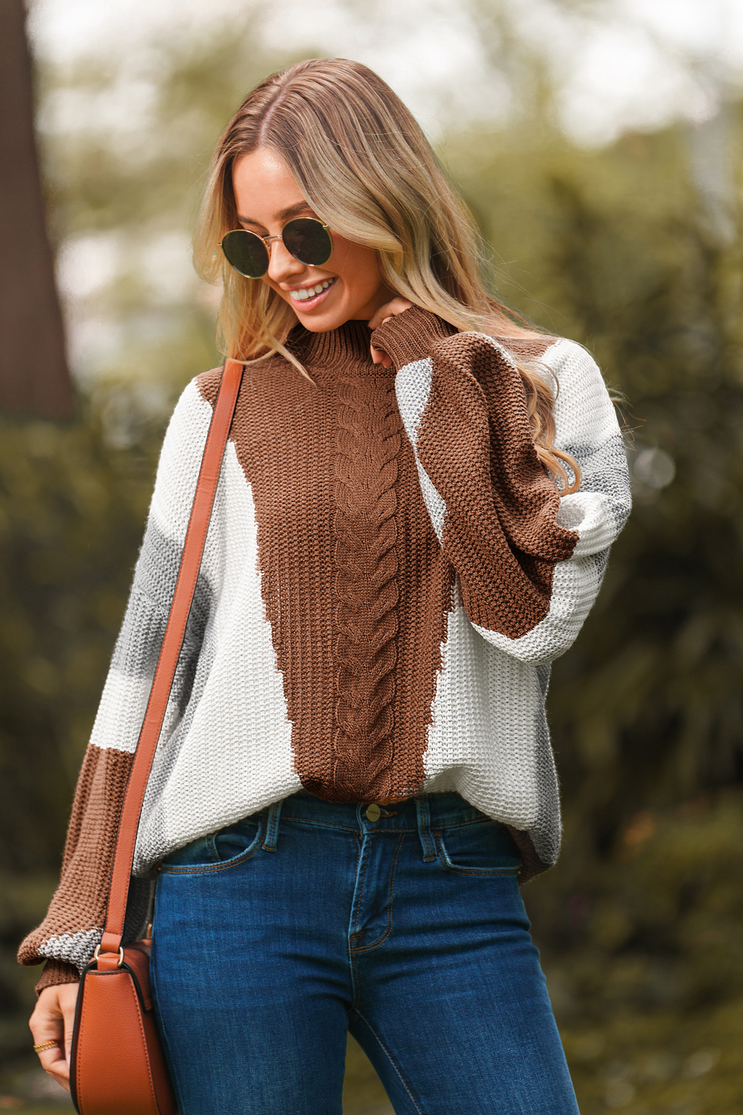 ThuisColorblock Kabelgebreide Lange Mouw Coltrui