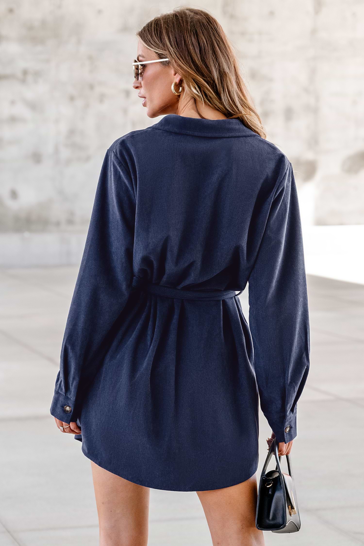 Corduroy jurk met knoopsluiting en riem aan de voorkant