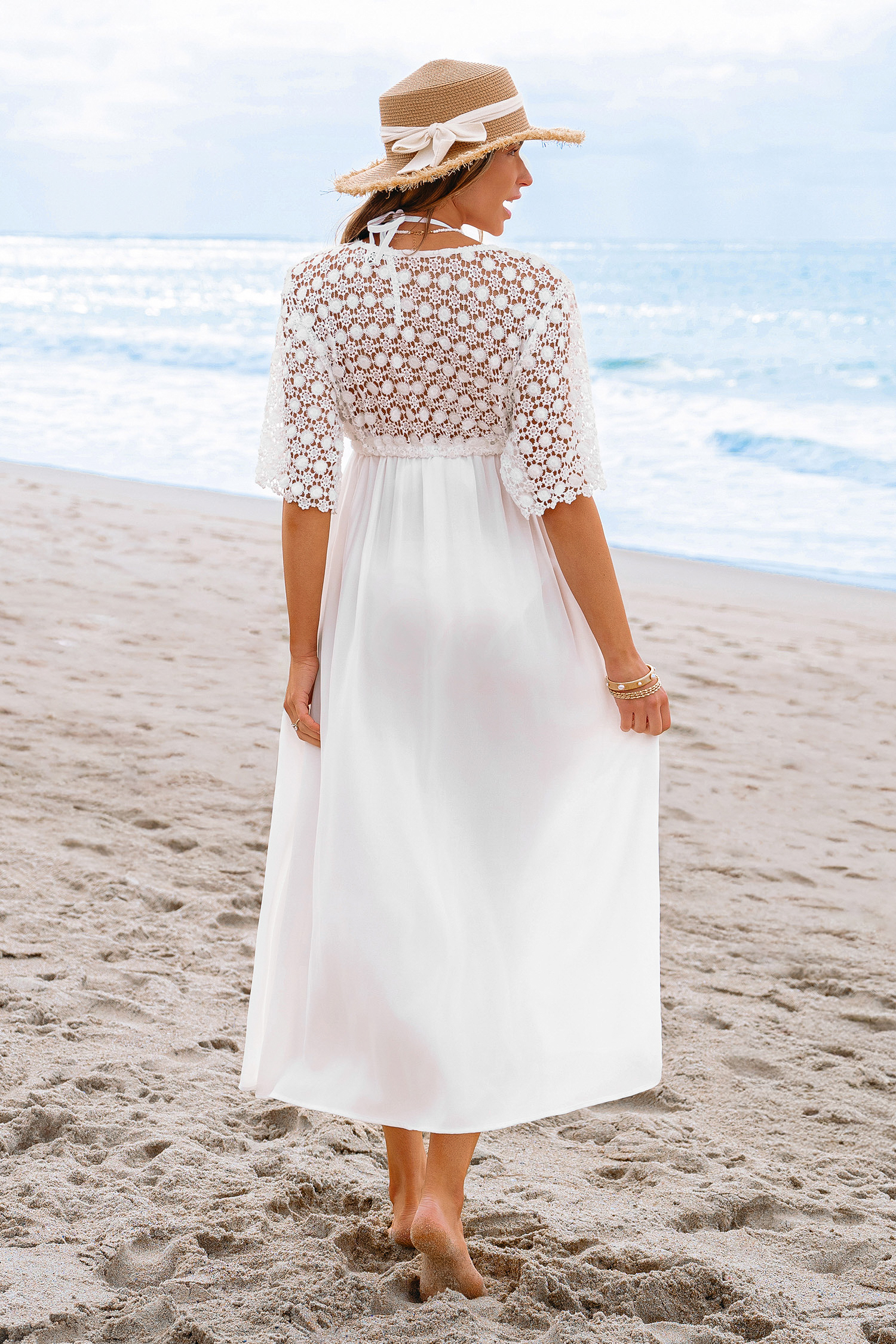 Dromerige kant witte cover-up kimono
