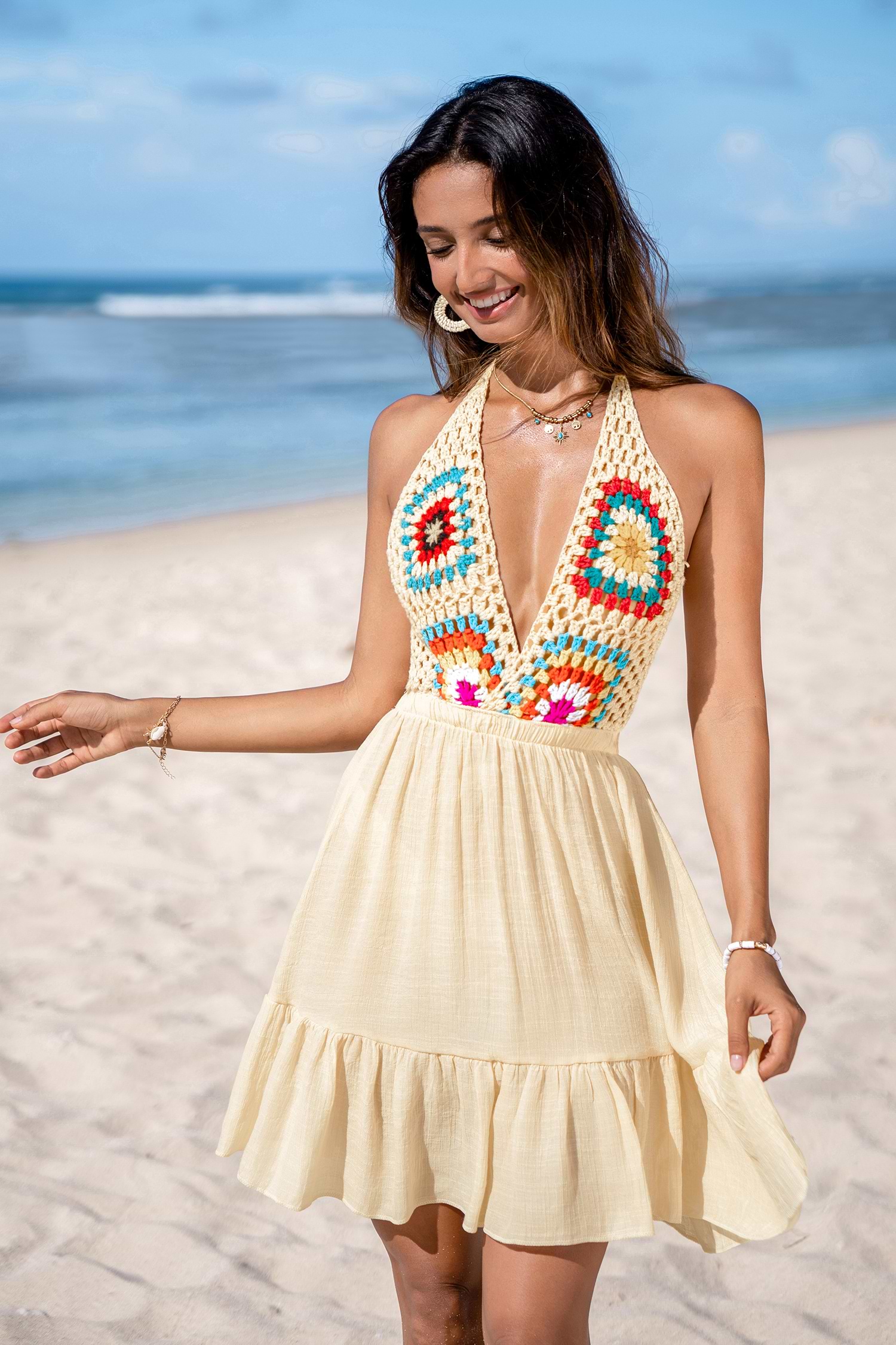 Marineblauwe diep uitgesneden jurk met dubbele taille en strikbandjes