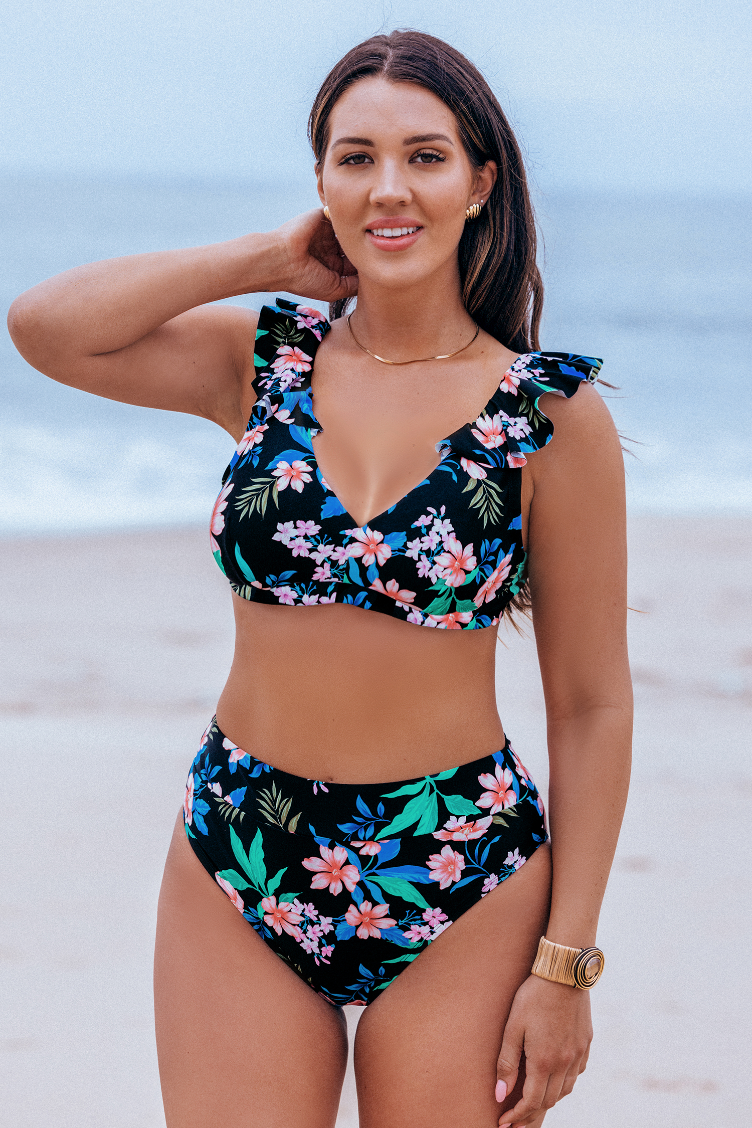 Set bikinitopje met bloemenprint en broekje met hoge taille