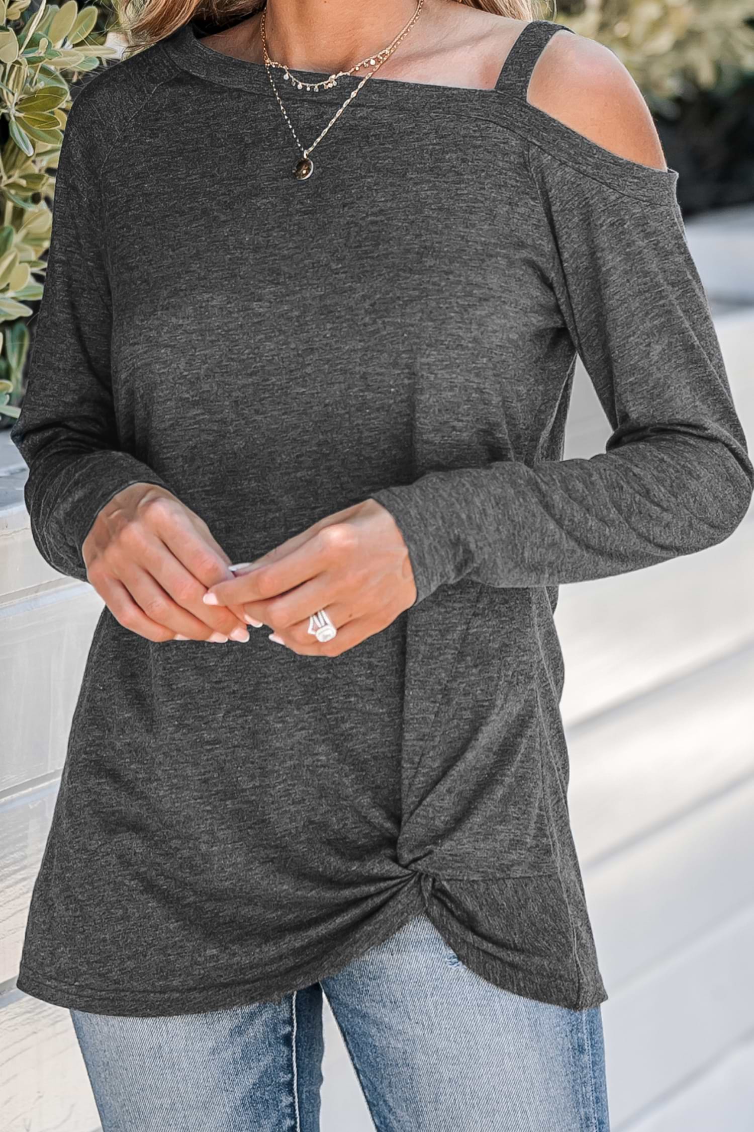 Gemêleerd gebreid gedraaid T-shirt met één schouder