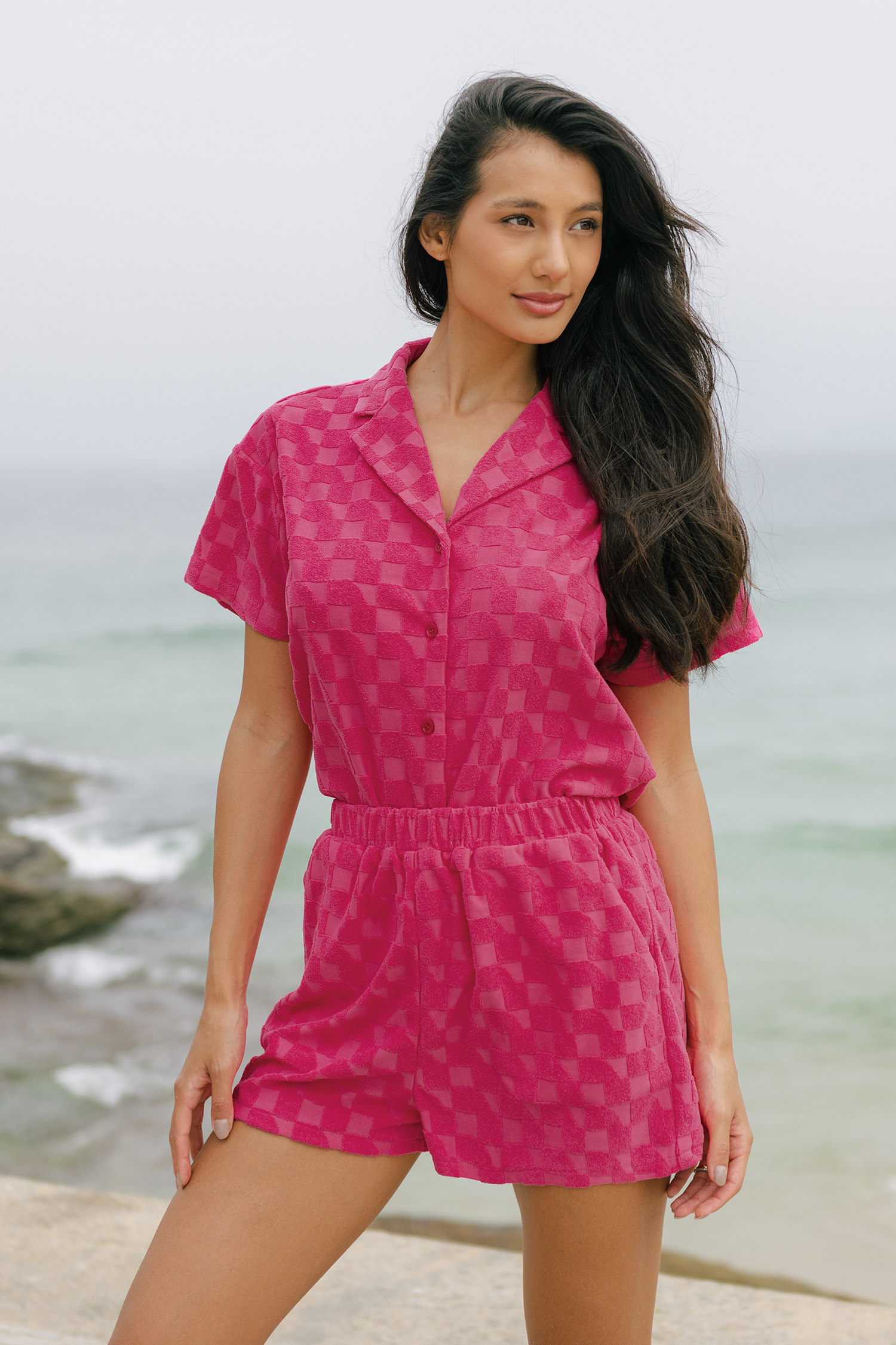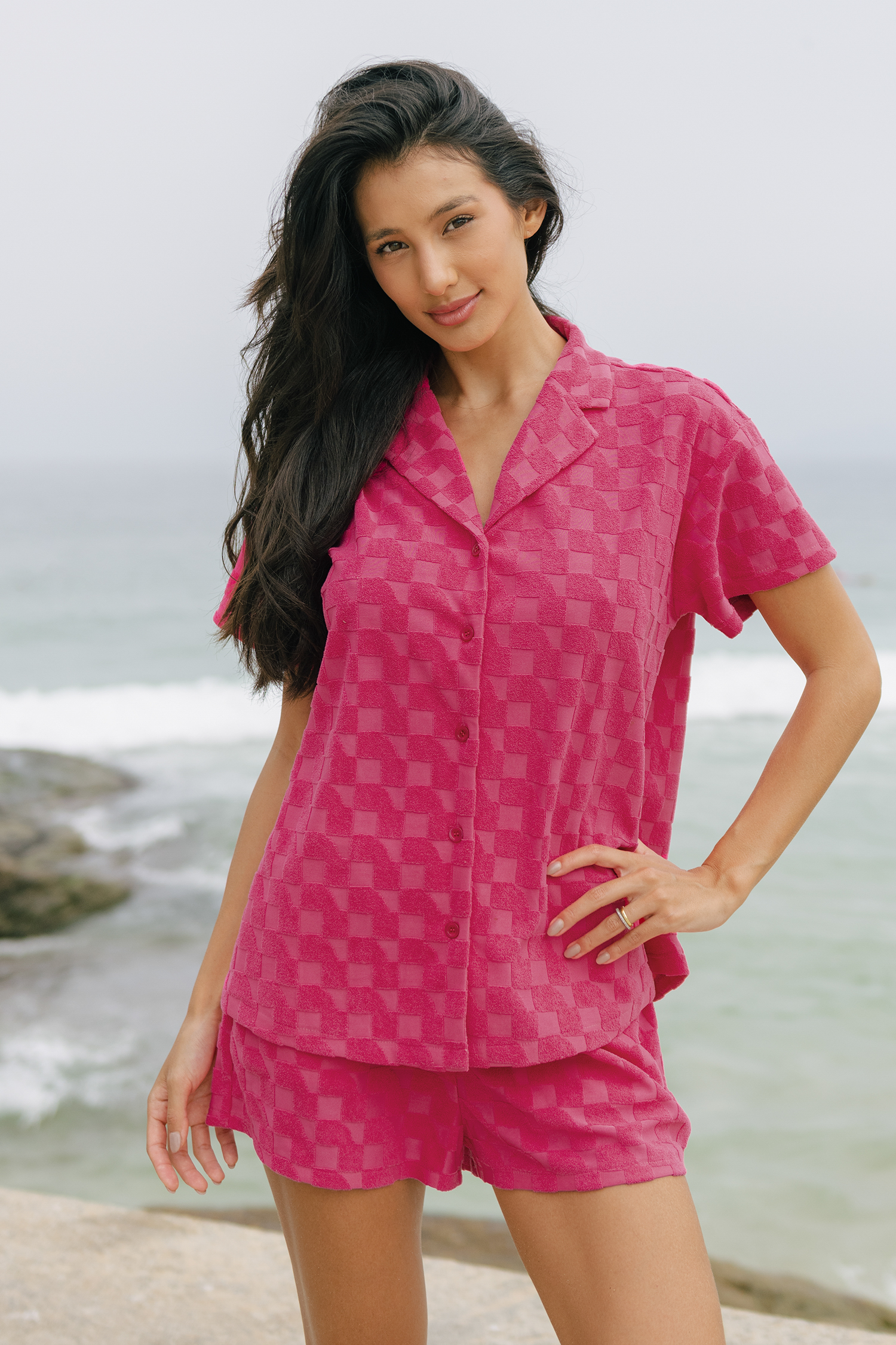 ThuisGeruit overhemd van jacquard met knopen aan de voorkant
