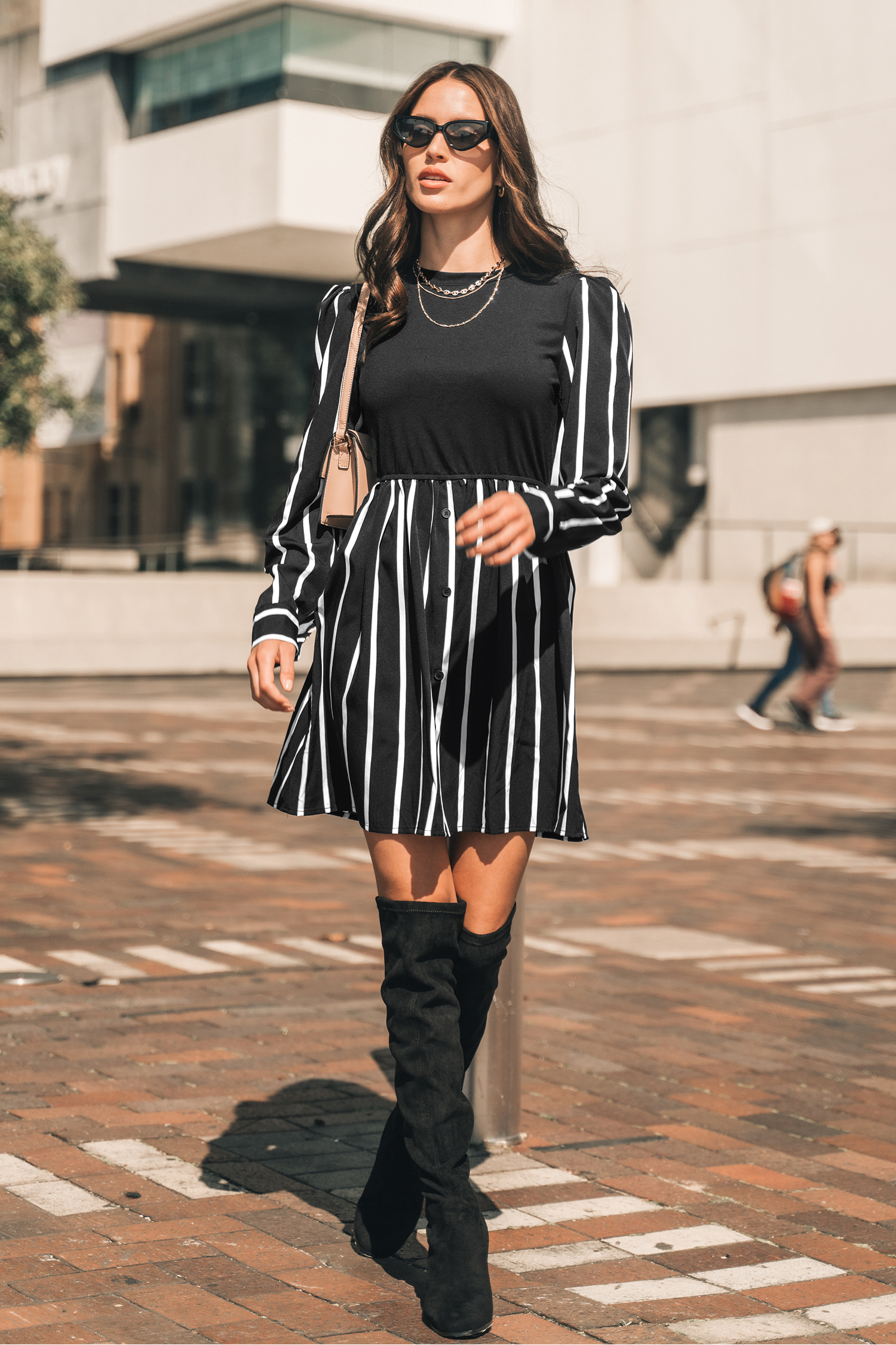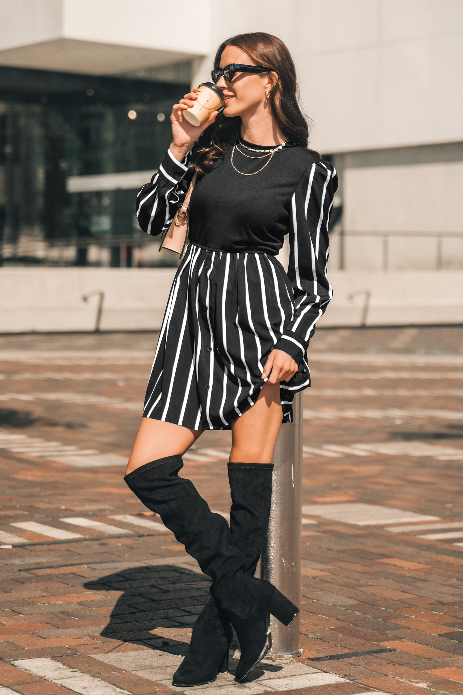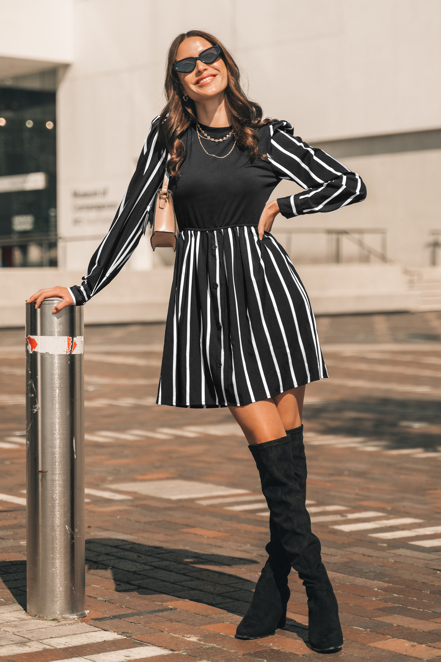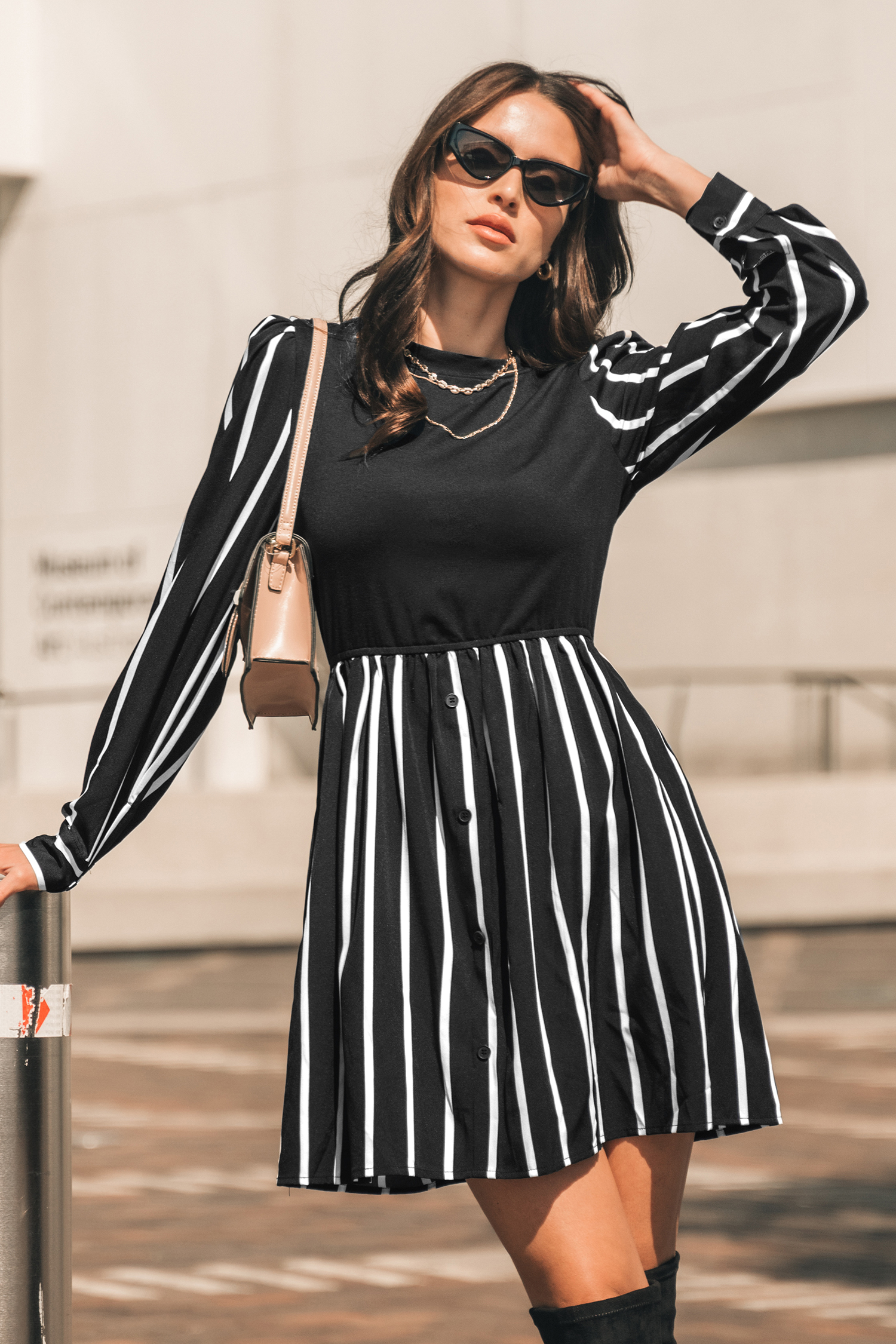 Gestreepte mini-jurk met ronde hals