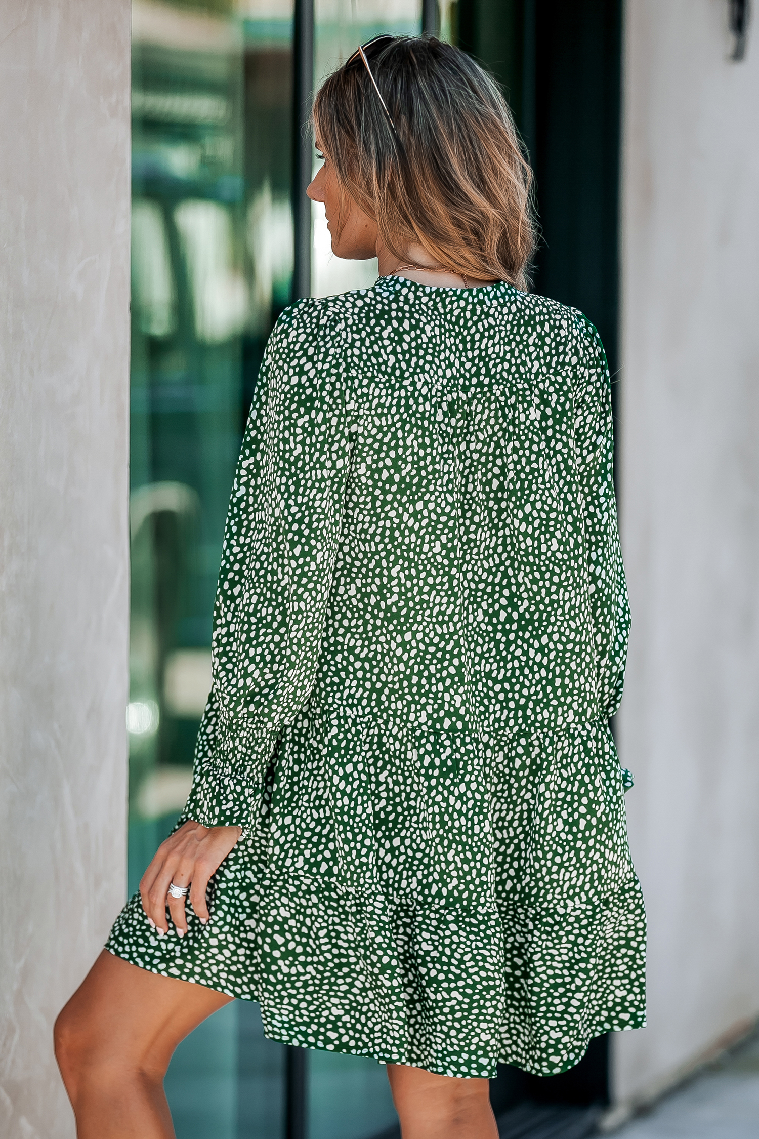 ThuisMini-jurk met groene en witte stippen en V-hals