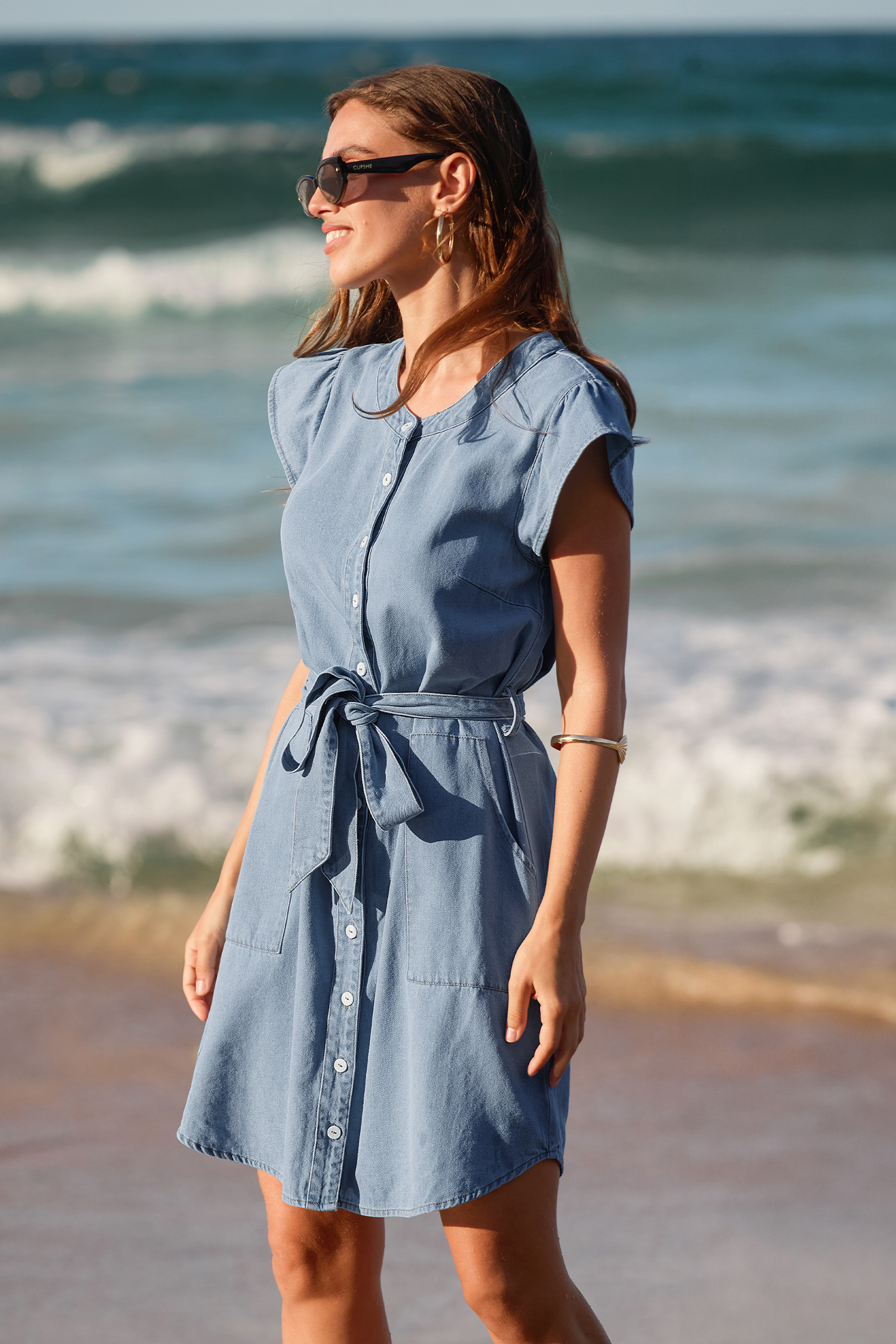Houd ze in spanning met de moeilijk verkrijgbare blauwe mini-jurk! De ronde halslijn, korte mouwen en minilengte geven de jurk een flirterige en zelfverzekerde uitstraling.