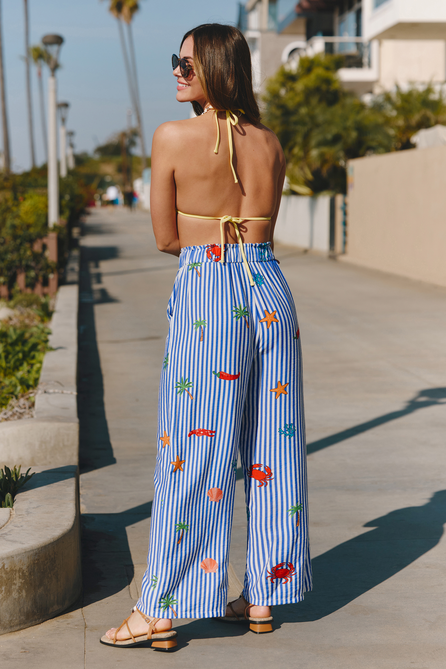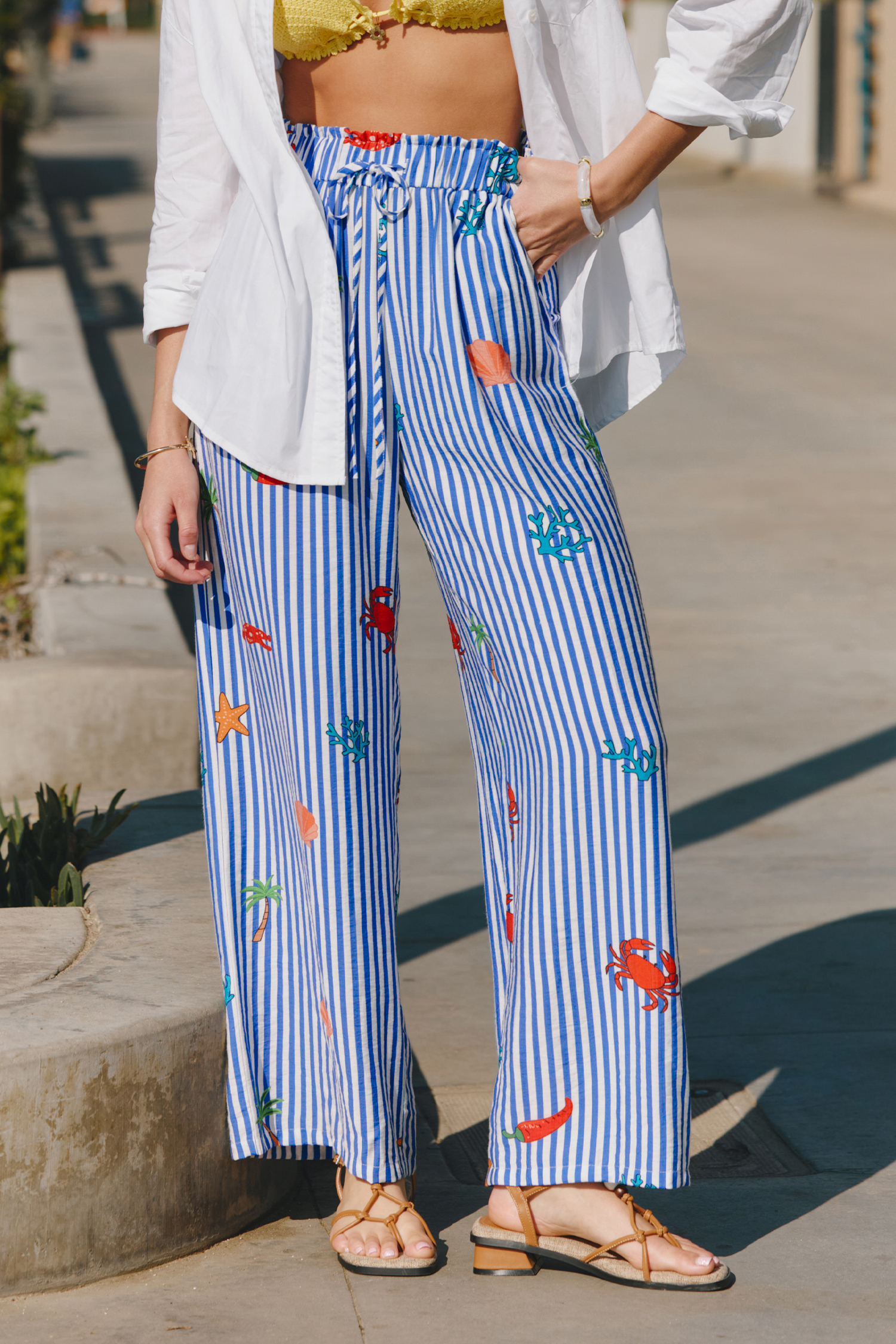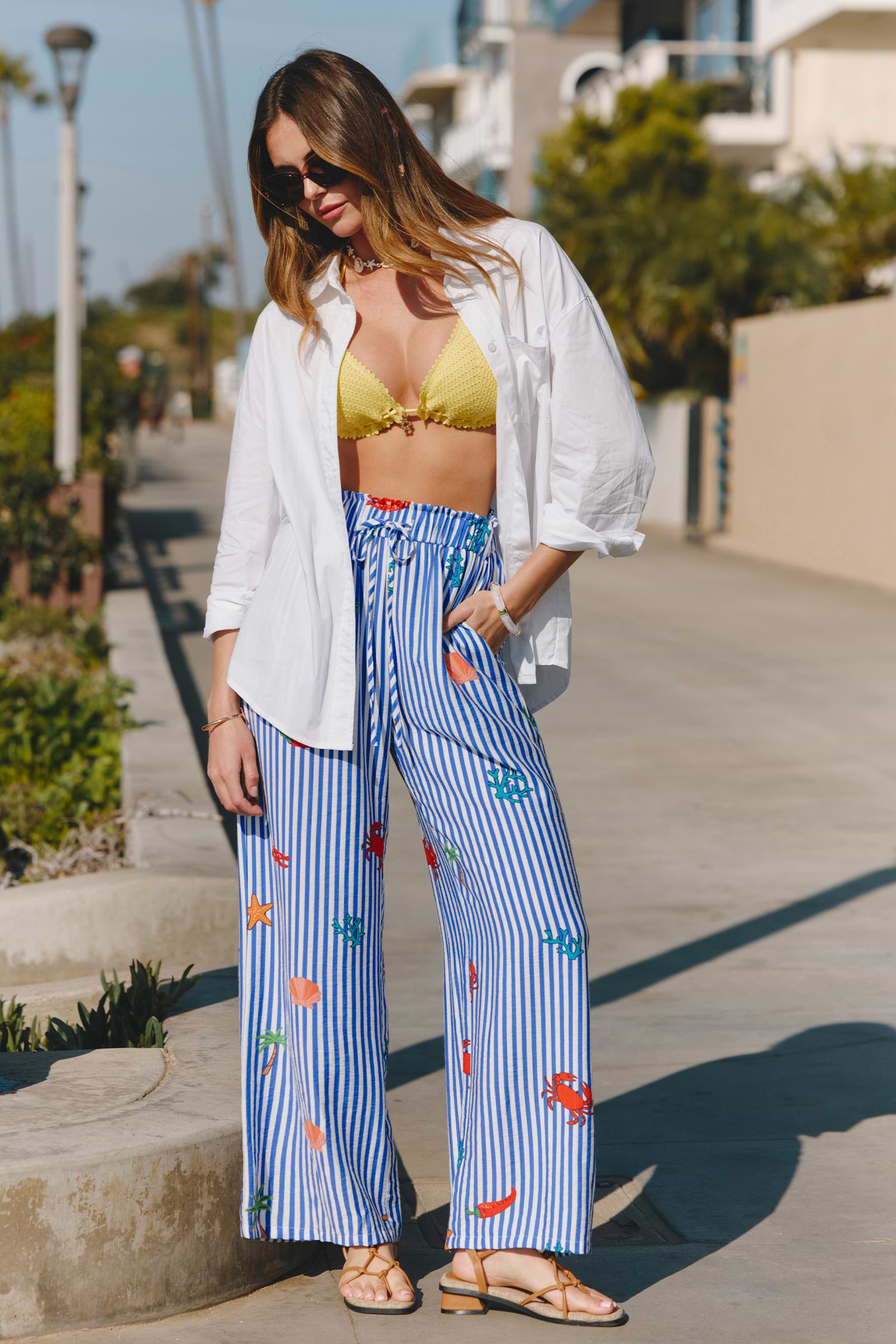 De Island Itinerary gestreepte broek geeft je die luchtige, comfortabele look die je zoekt op warme dagen! De broek heeft een elastische tailleband, handige zakken en een losse pasvorm voor een makkelijke en comfortabele look.