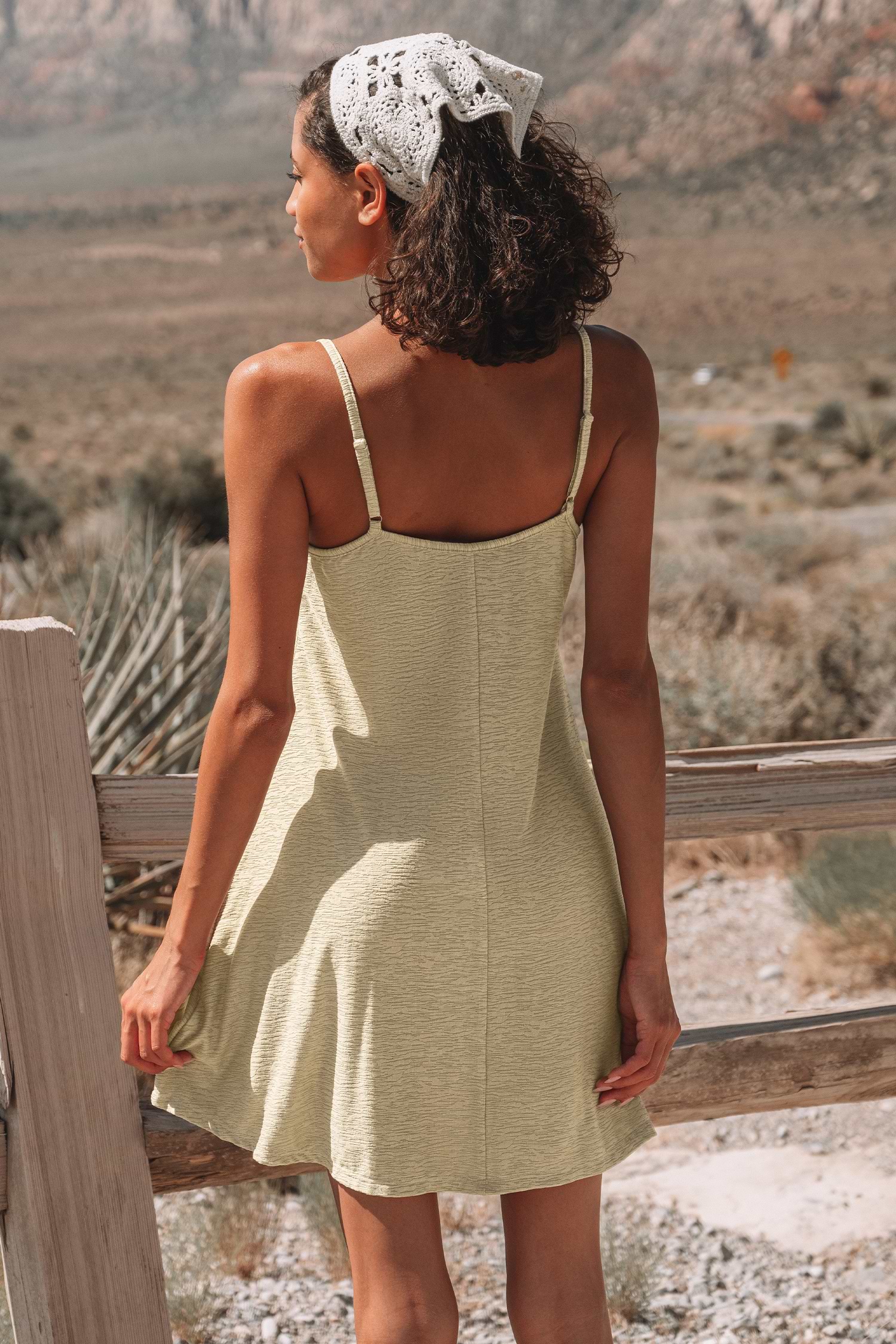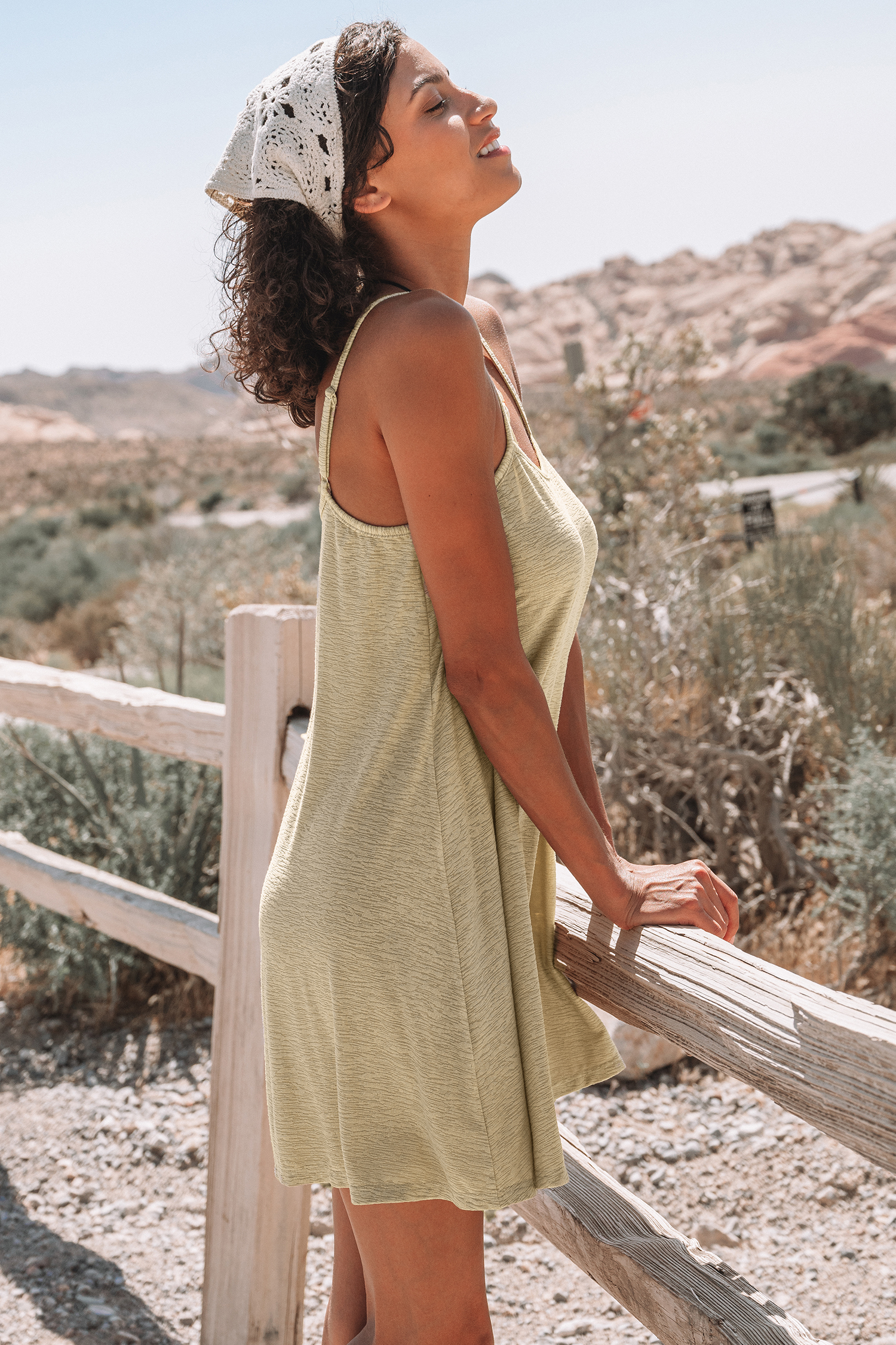 ThuisKaki mouwloze jersey mini-jurk met vierkante hals
