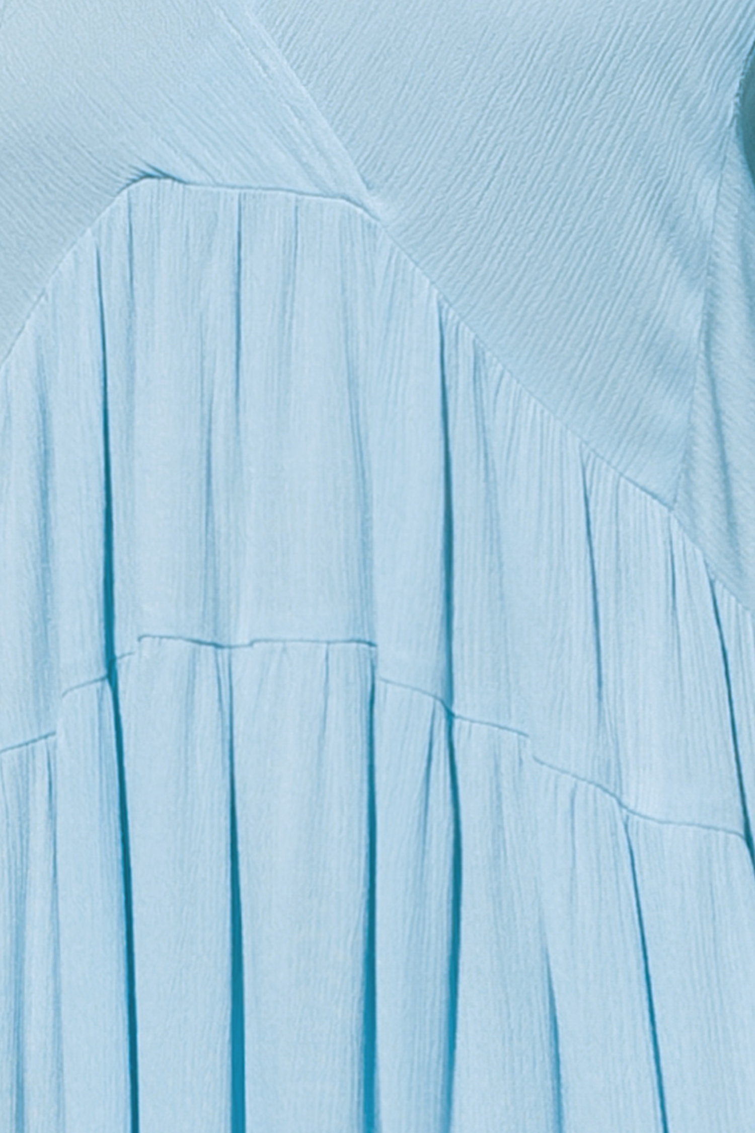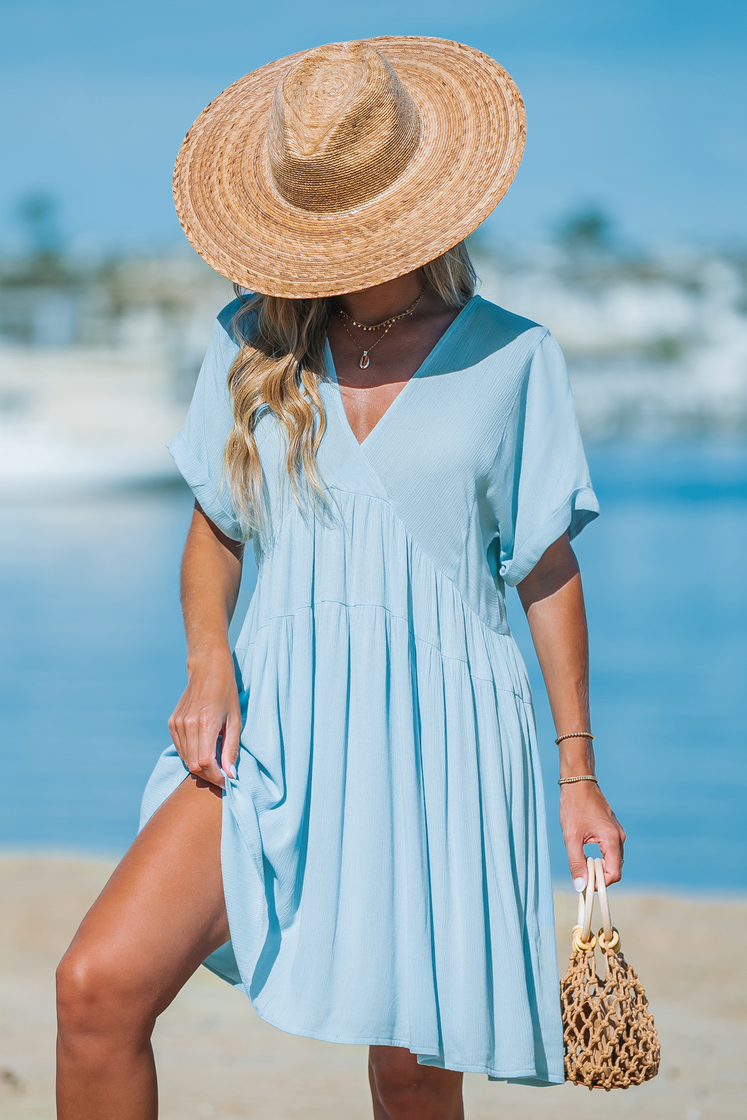 Lichtblauwe vloeiende mini-jurk met korte mouwen