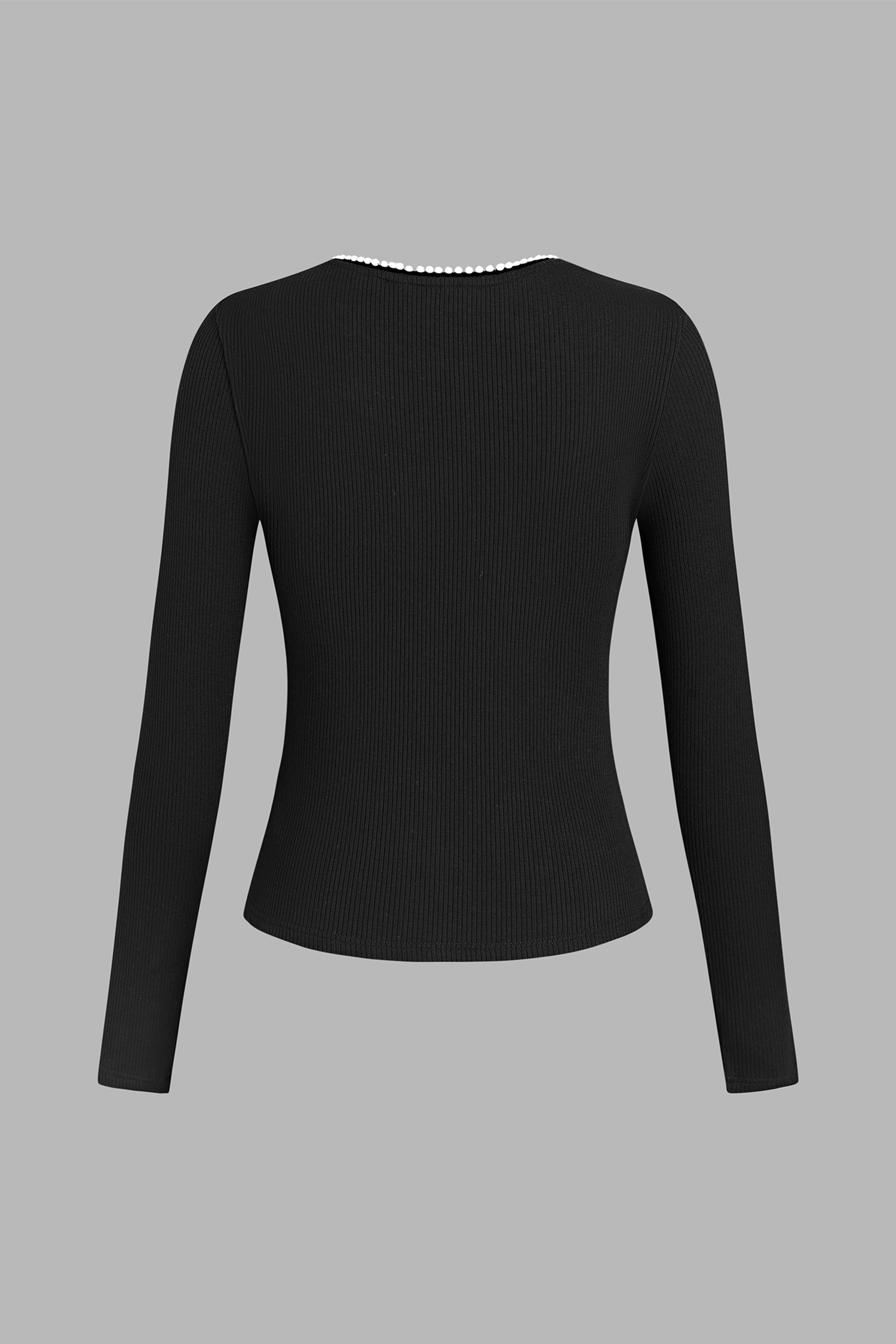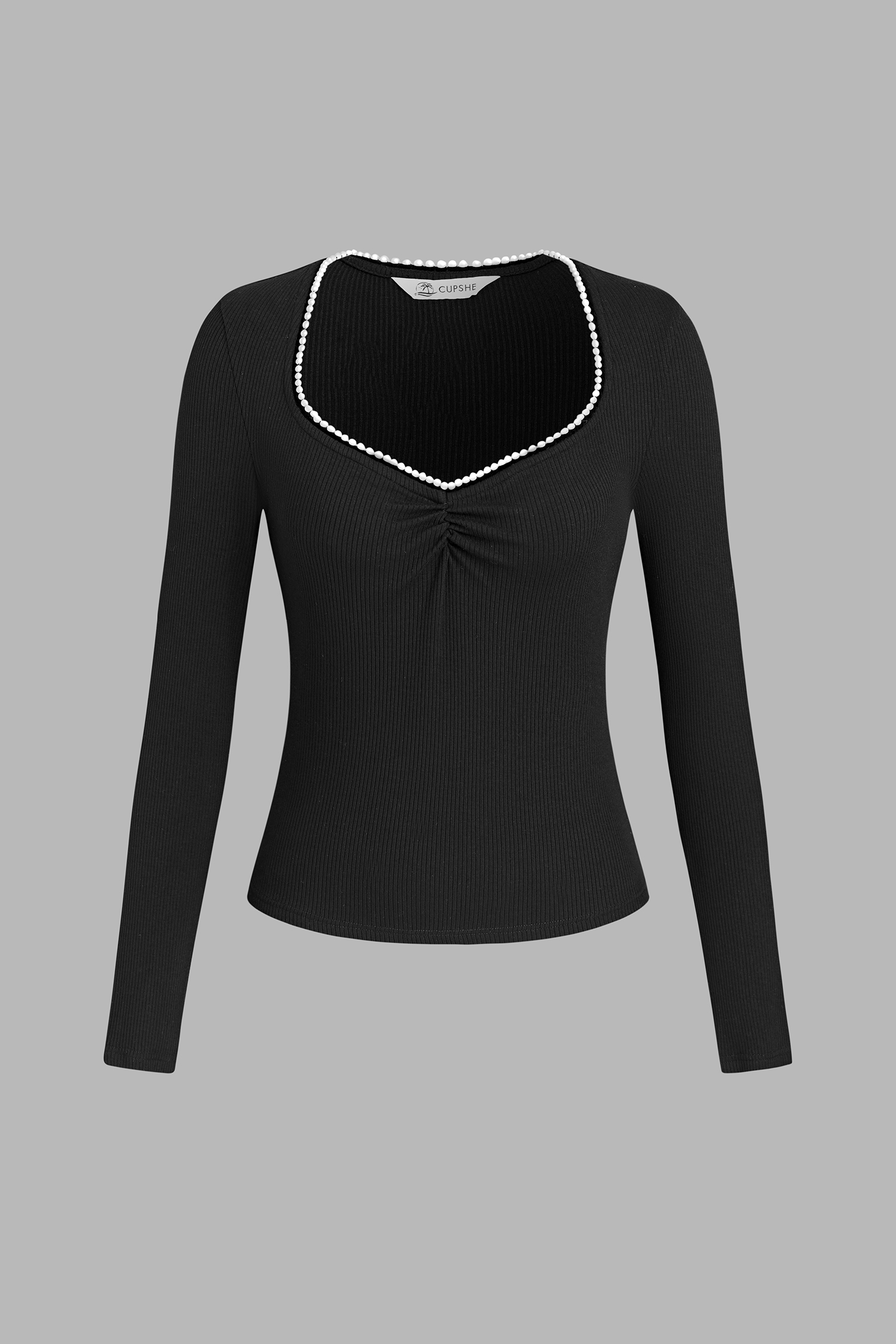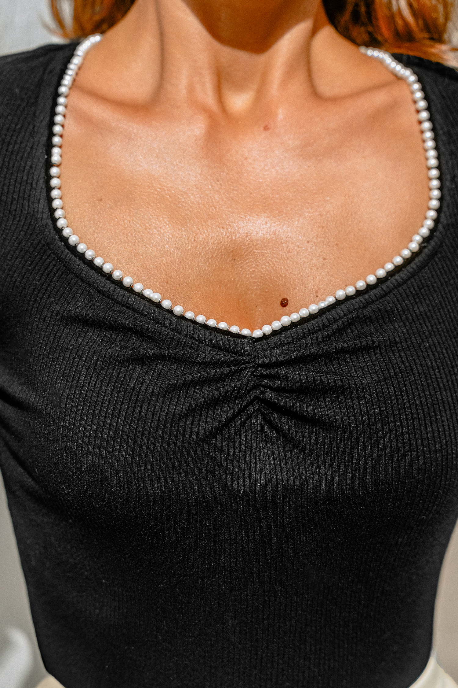De Loveliest Black Top is een speels en tijdloos item! De sweetheart-halslijn en lange mouwen geven hem een vrouwelijke, verfijnde look, perfect voor overdag én 's avonds.
