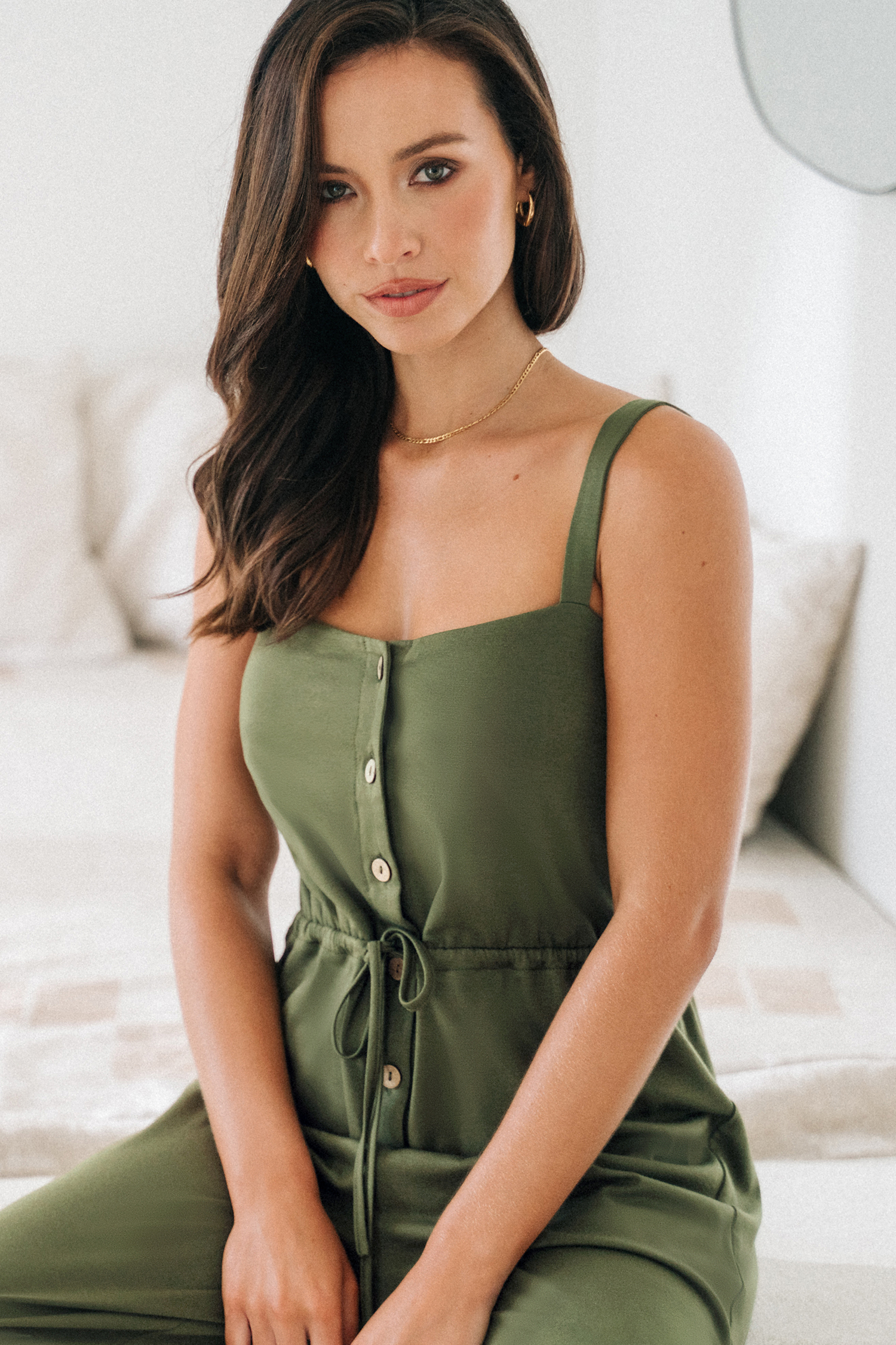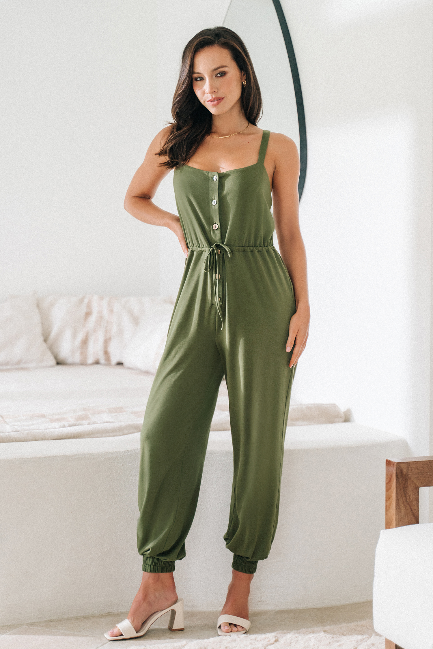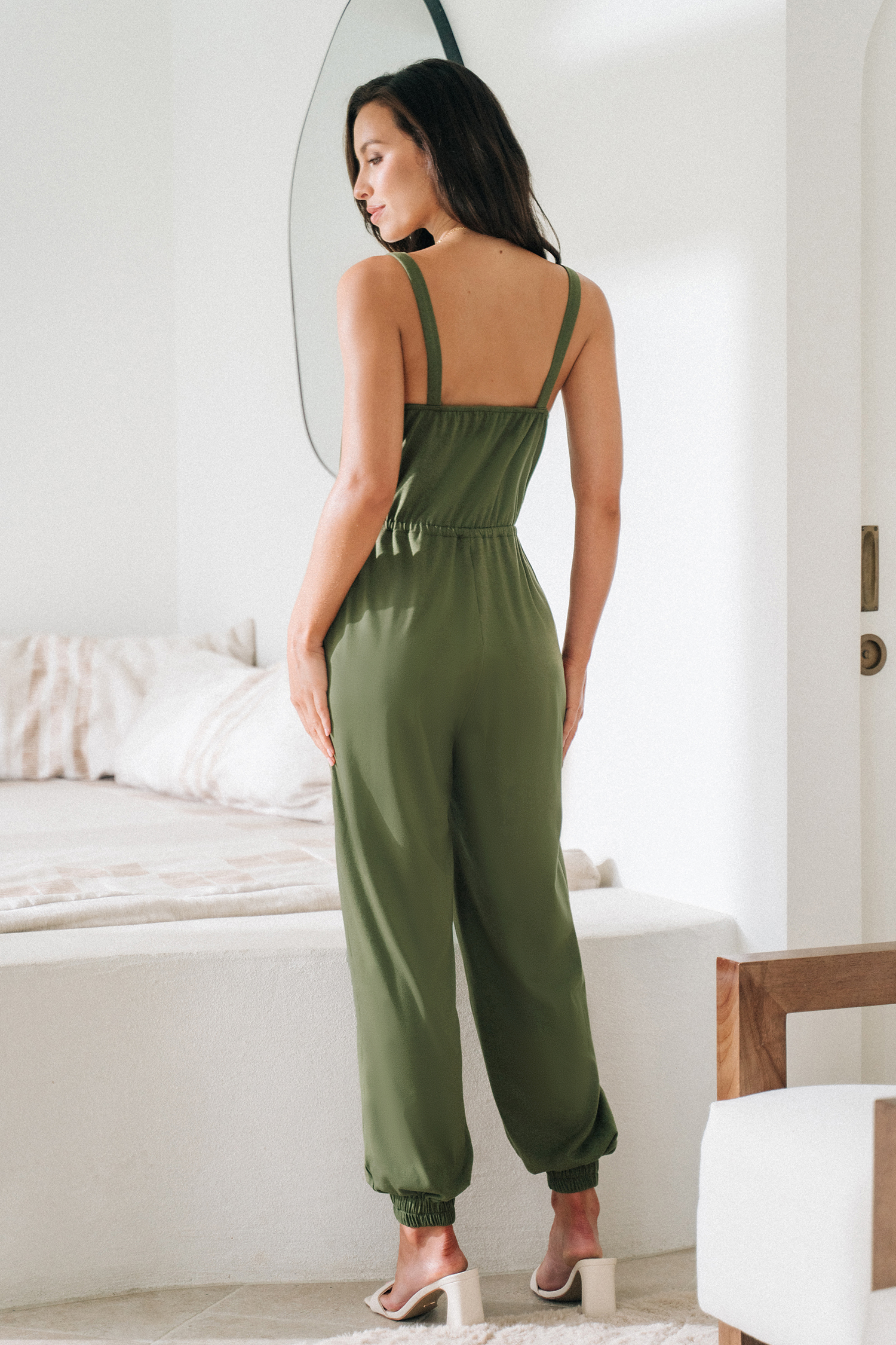 Olijfgroene lieverd jumpsuit met taps toelopende pijpen
