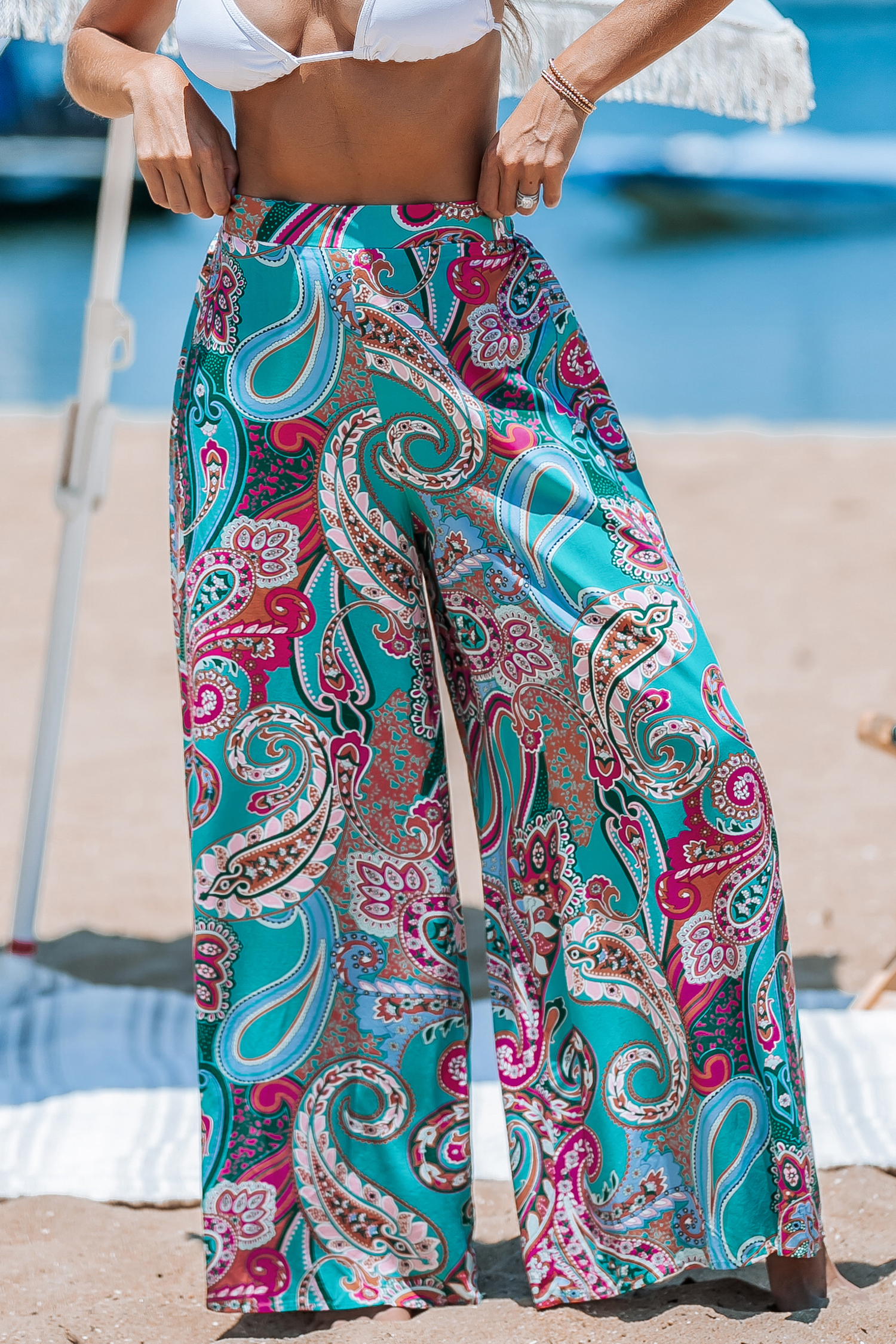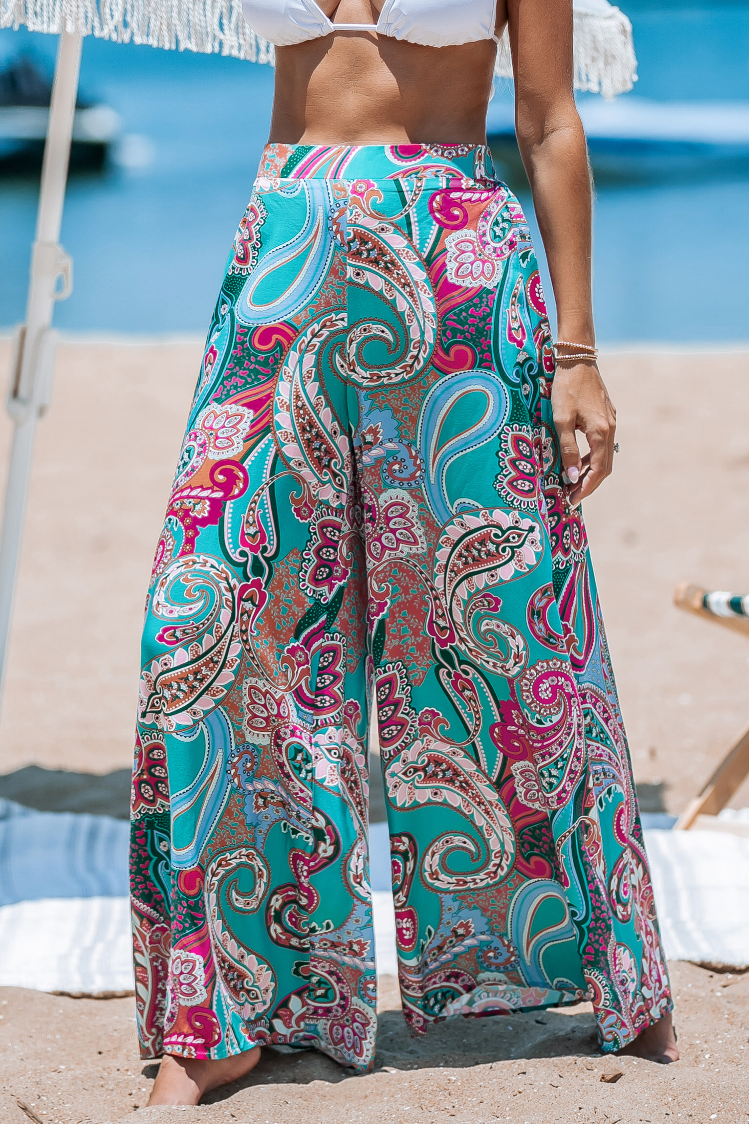 Paisley broek met hoge taille en wijde pijpen