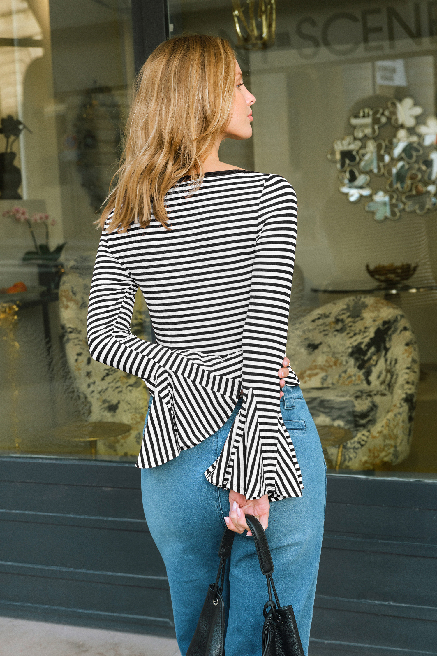 De City Beat Striped Top geeft elke dag een speelse, vrouwelijke vibe! Met zijn off-shoulder halslijn en dramatische, klokkende mouwen is dit het soort item dat direct vrolijk en fris aanvoelt.