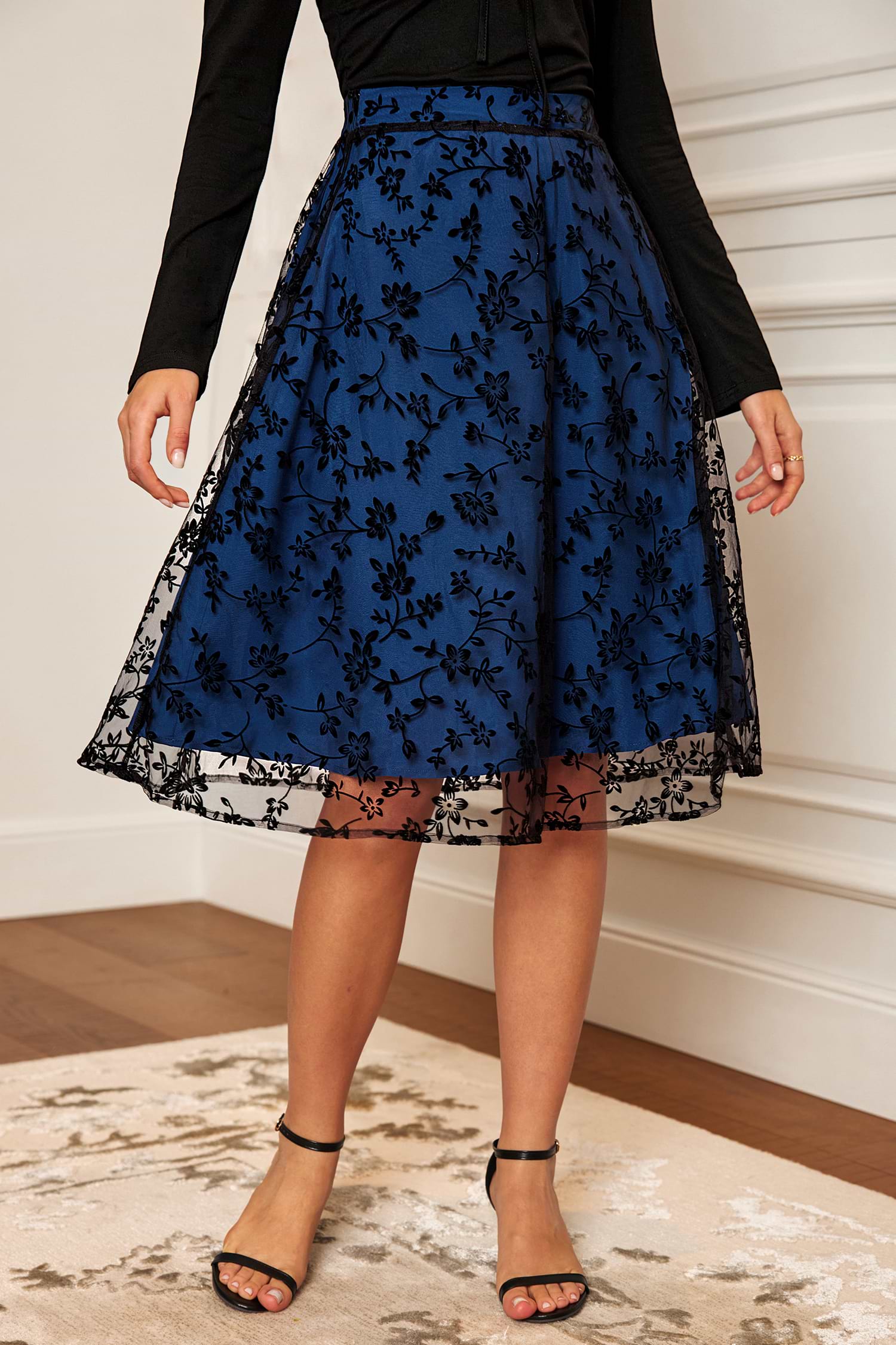 De Sapphire Blooms Floral Midi-rok geeft elke look een zachte, romantische energie! Hij heeft een elastische taille en een midi-lengte voor een soepele, zwierige pasvorm.