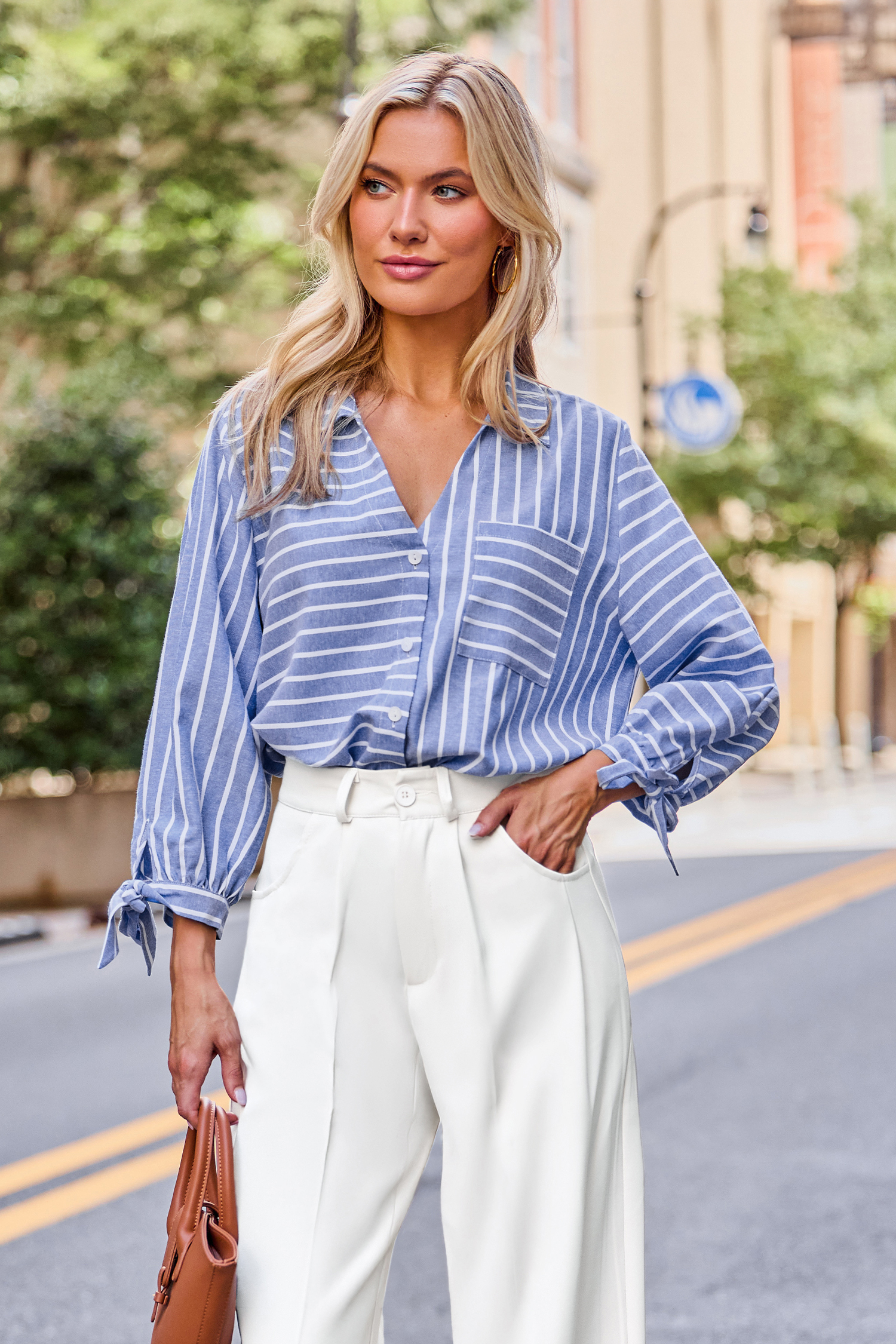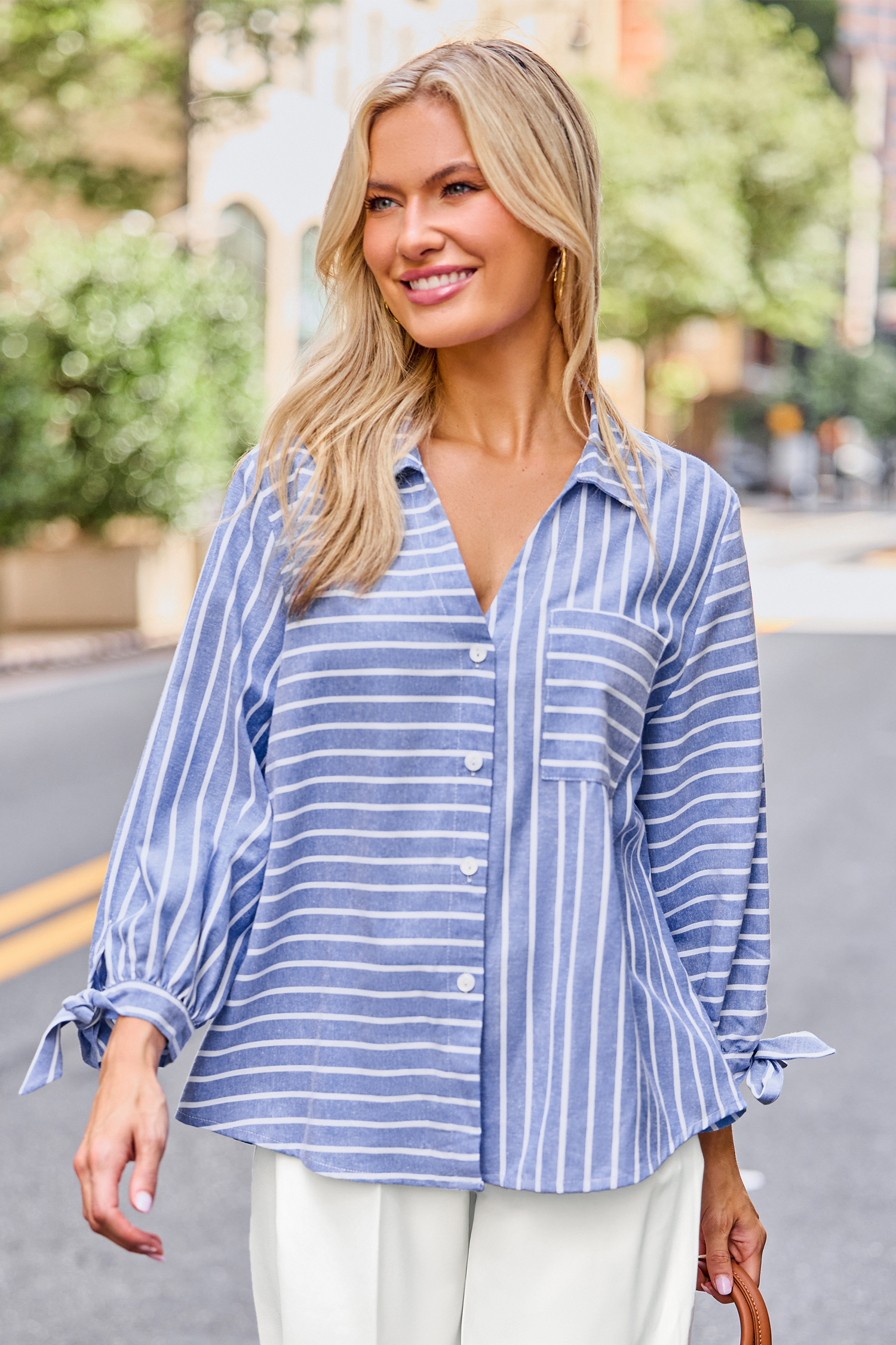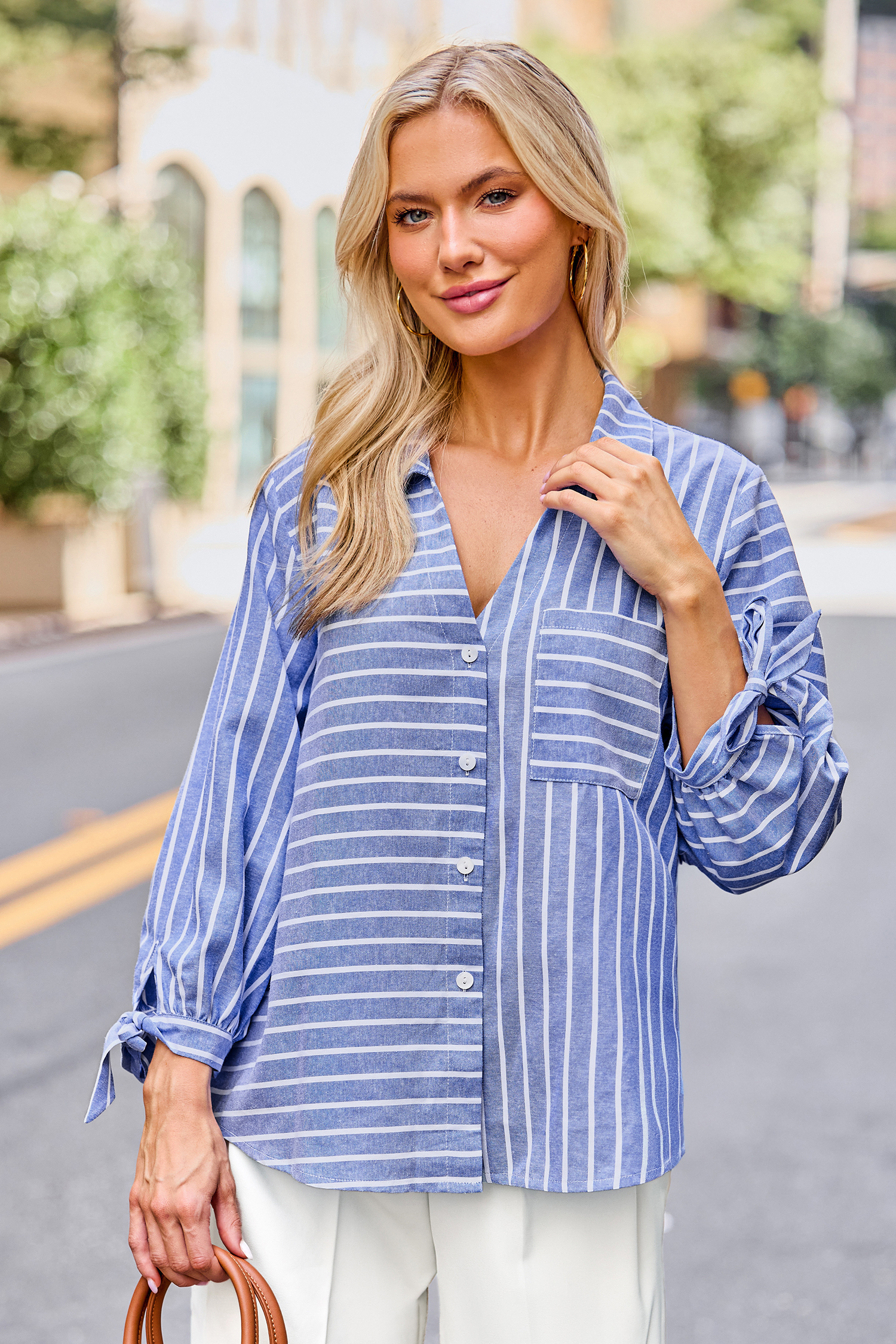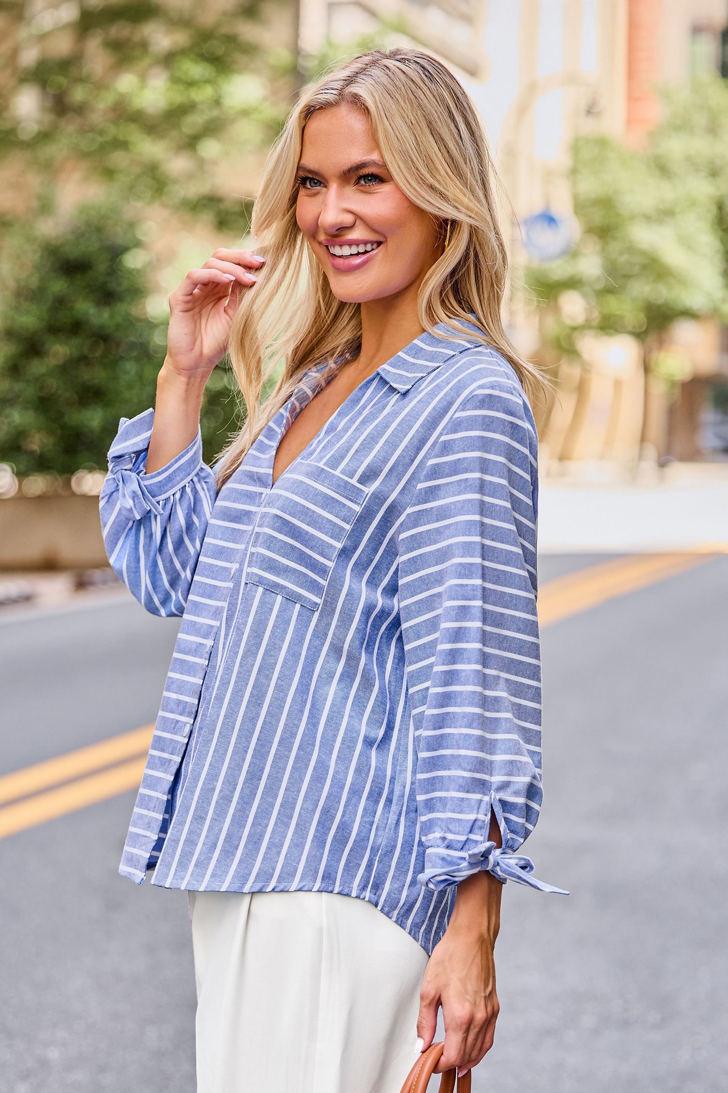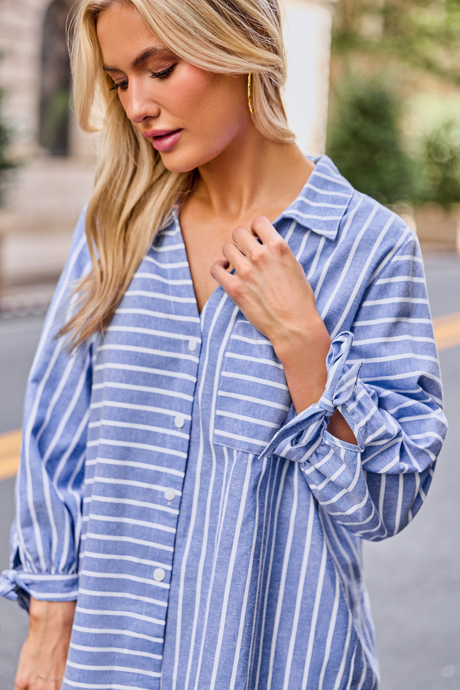 Het Tied Together gestreepte overhemd is stijlvol en casual met een relaxte uitstraling! Met een kraag, driekwartmouwen en een knoopsluiting is het perfect voor een moeiteloze stijl.