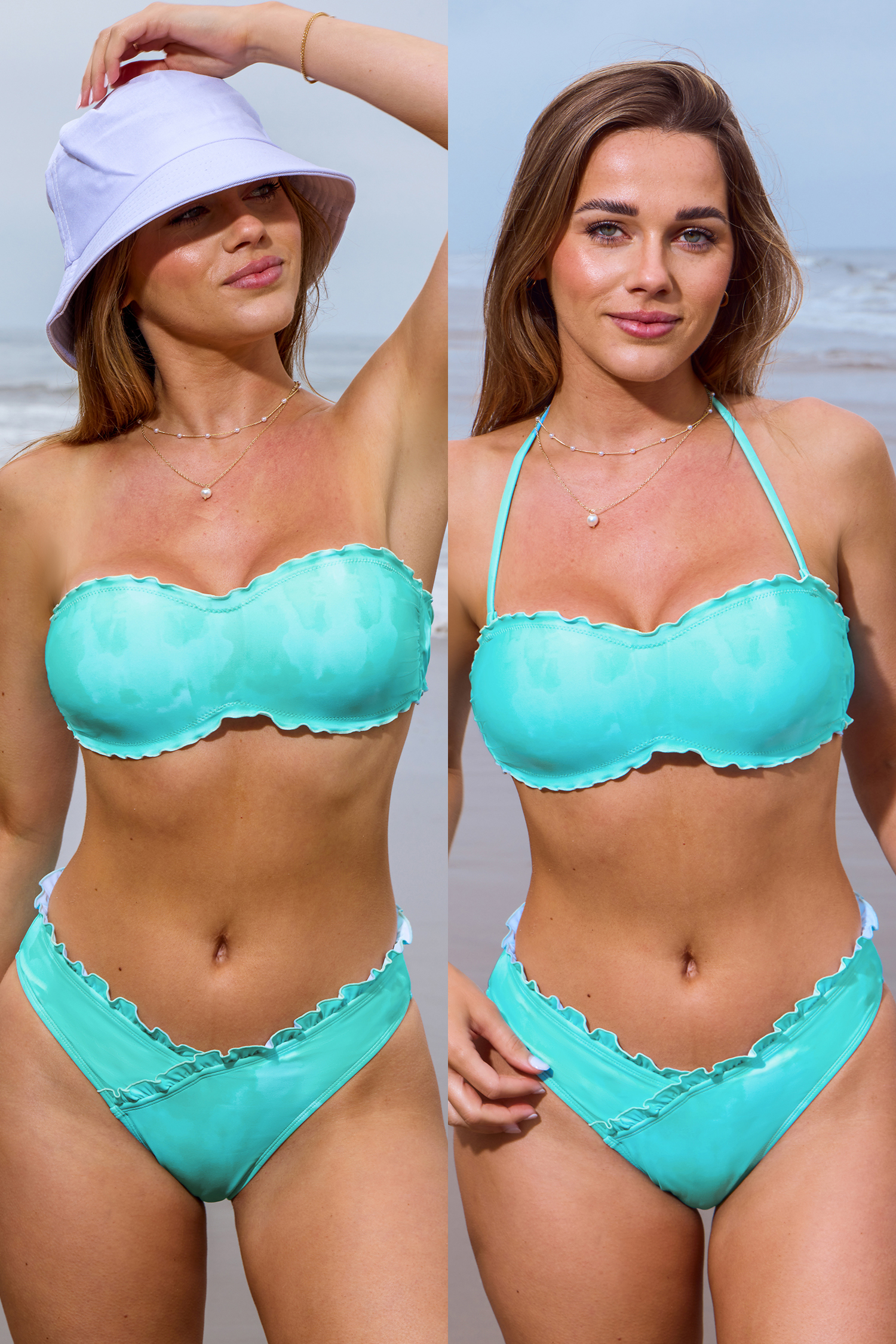 Turquoise converteerbare halterbikinitop en broekje met V-taille