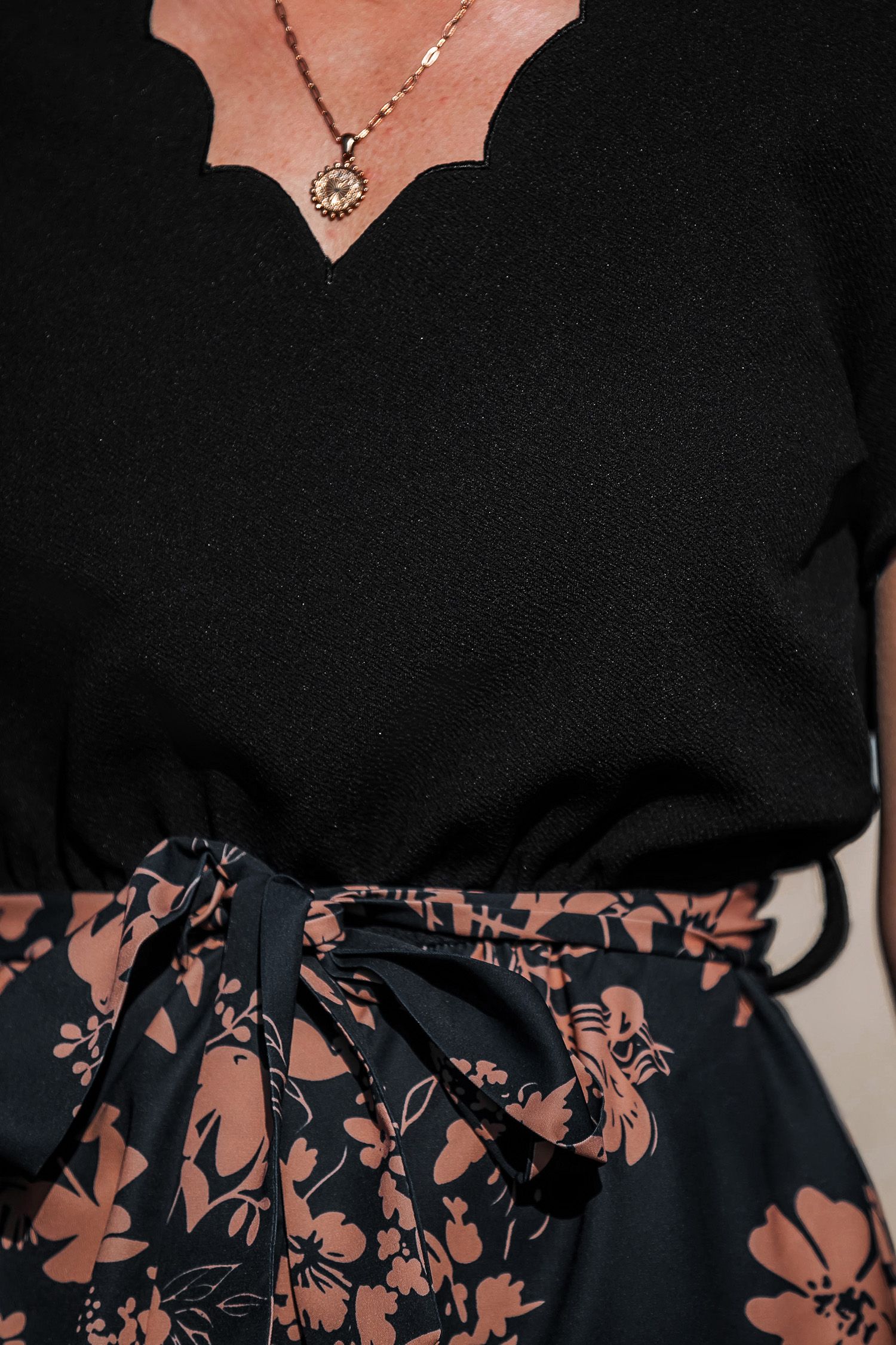 Tweekleurige romper met korte mouwen en geschulpte zoom