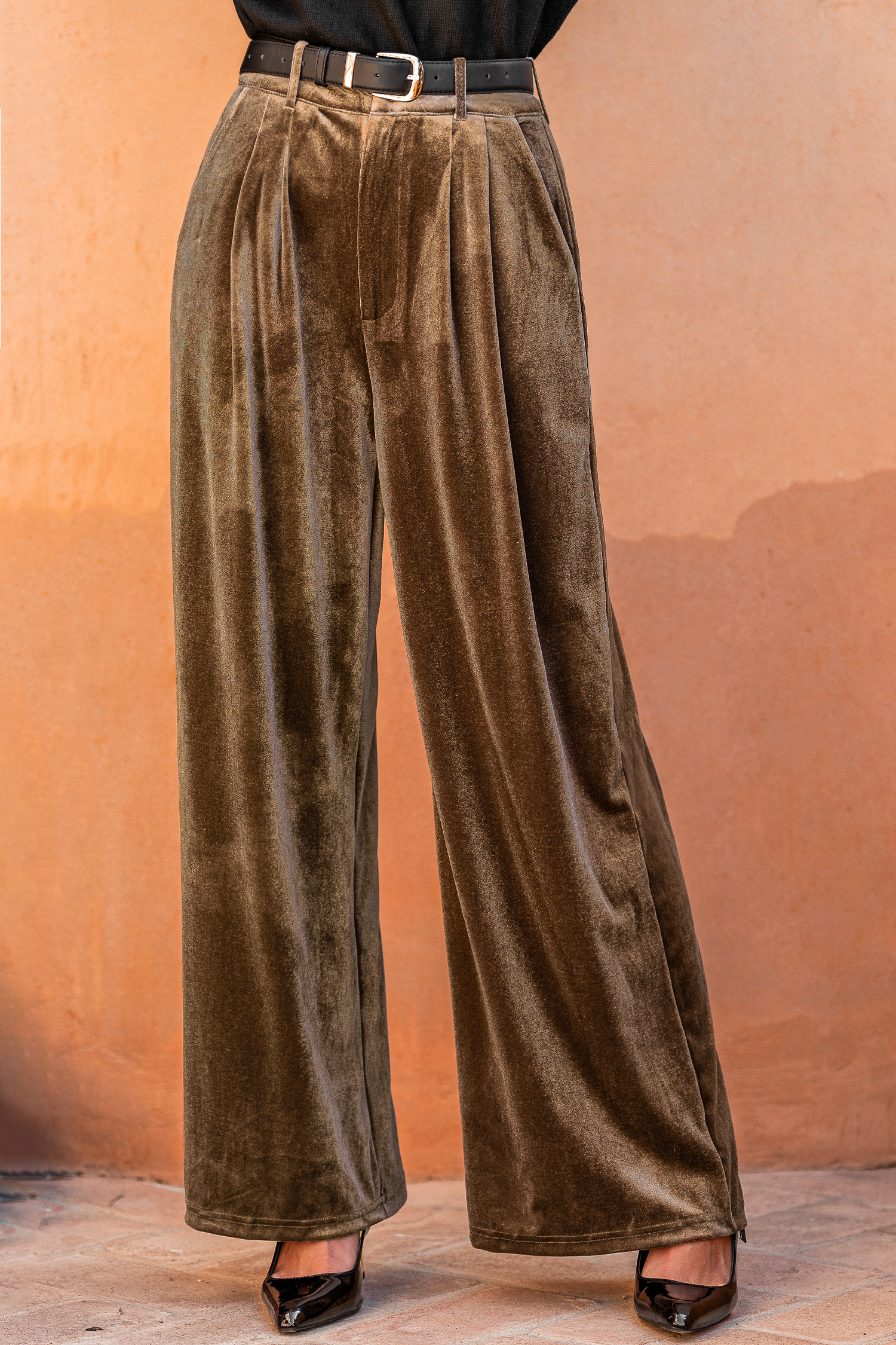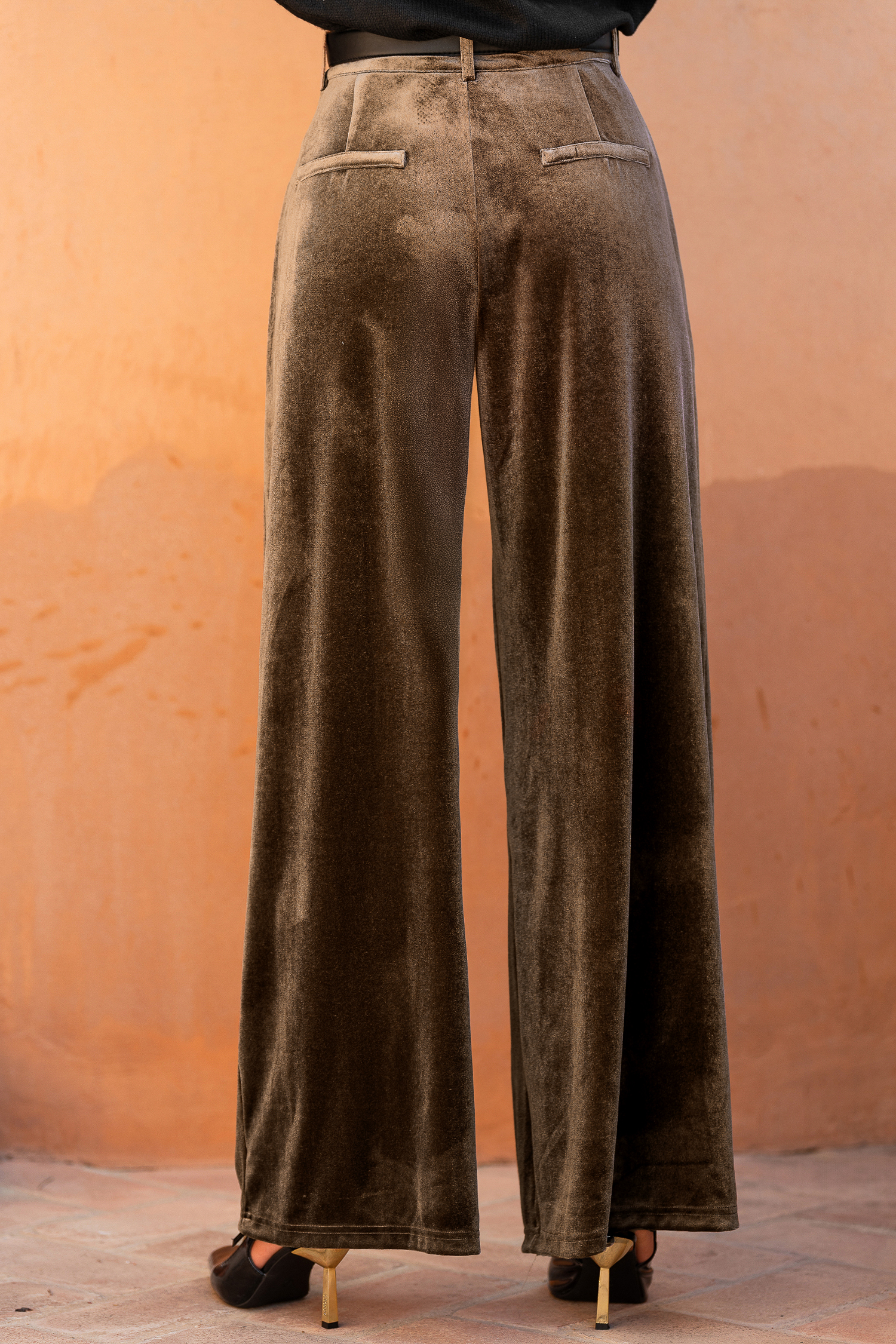 Houd het strak en speels in de Velvet Heat Brown Pants! De riemlussen van fluweelstof en de rechte pijpen geven je een look die moeiteloos cool is, van werk tot diner.