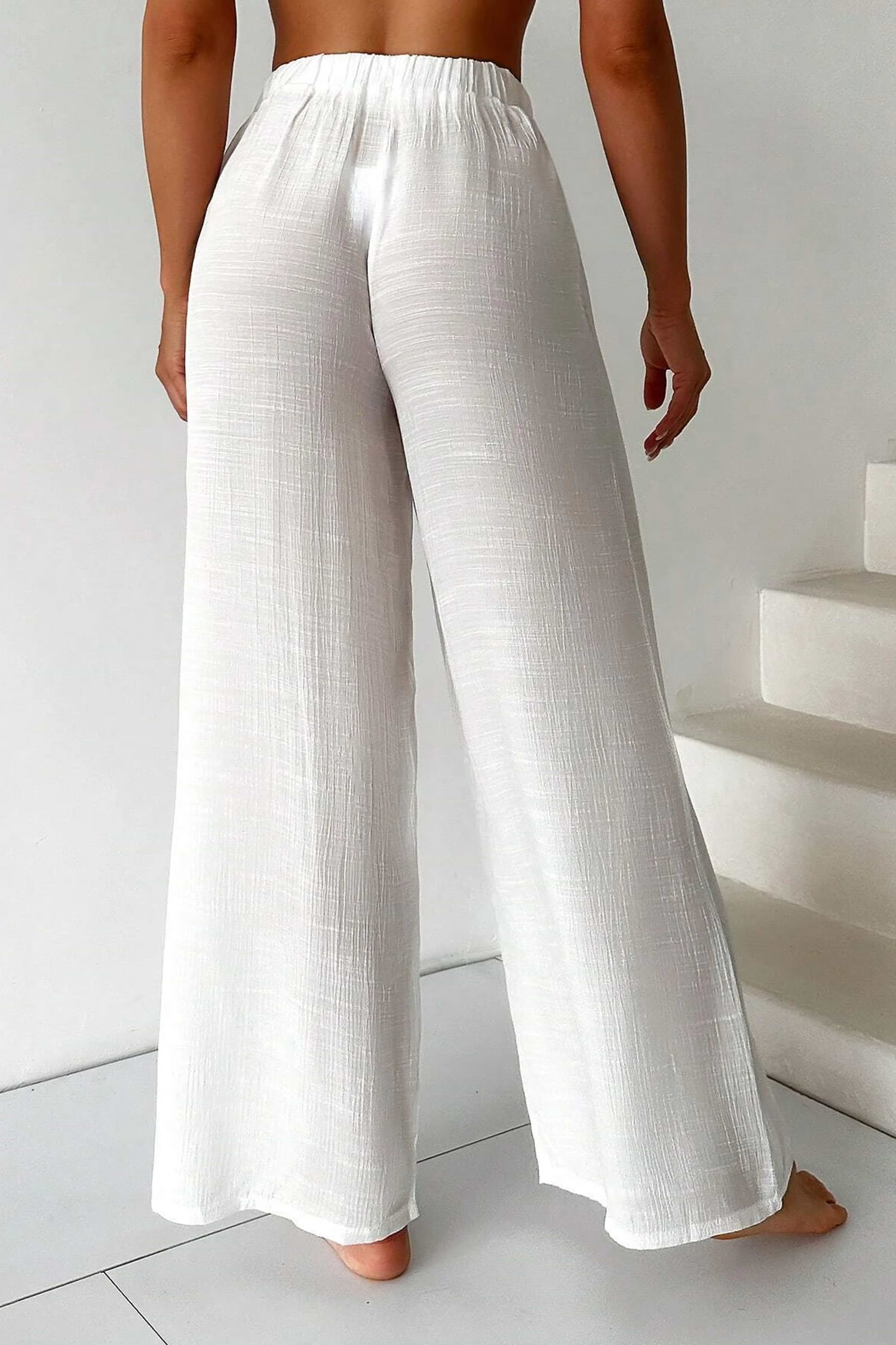Witte cover-upbroek met rechte pijpen en kruishatch-uitsparing