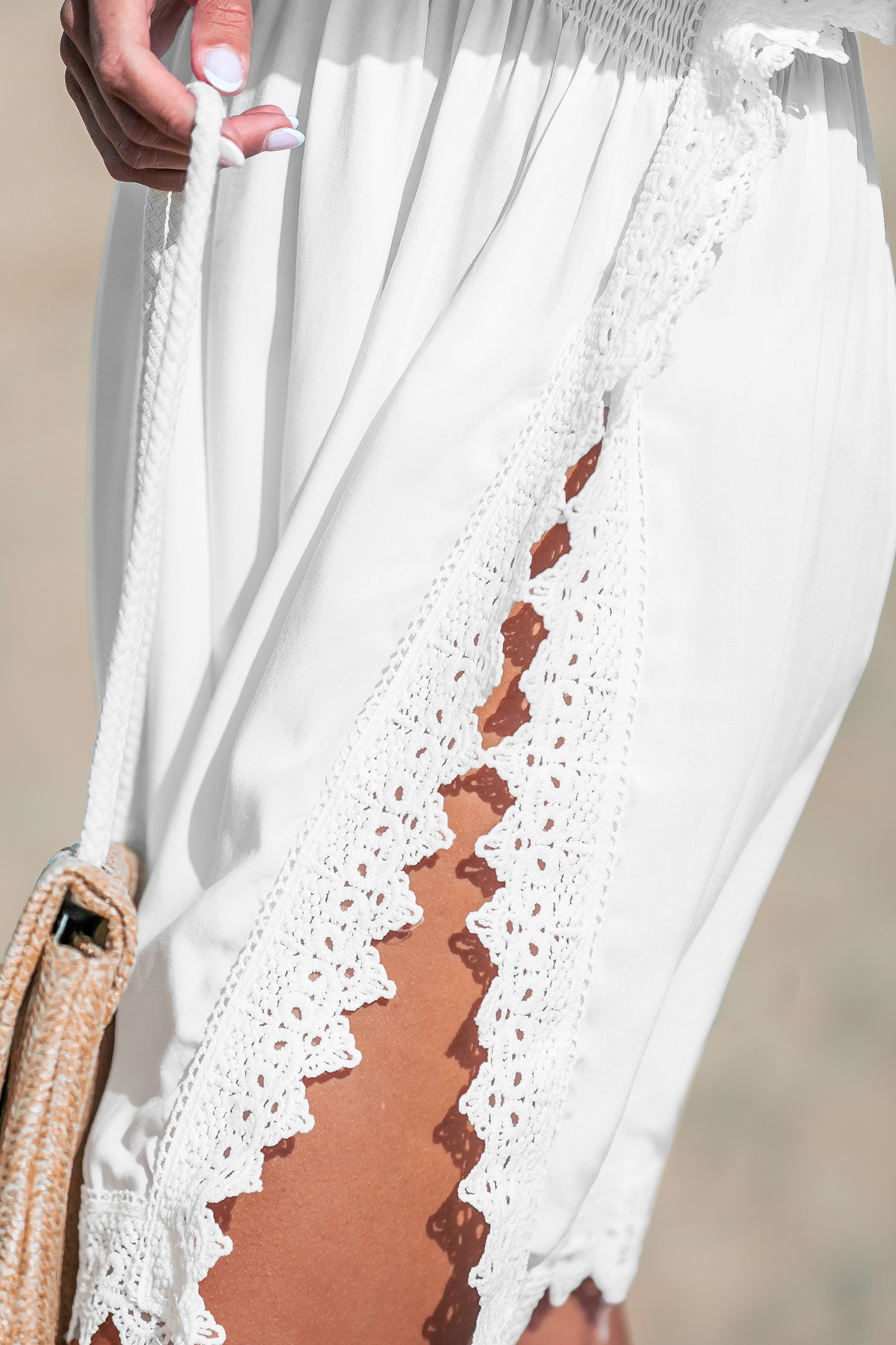 Marineblauwe diep uitgesneden jurk met dubbele taille en strikbandjes