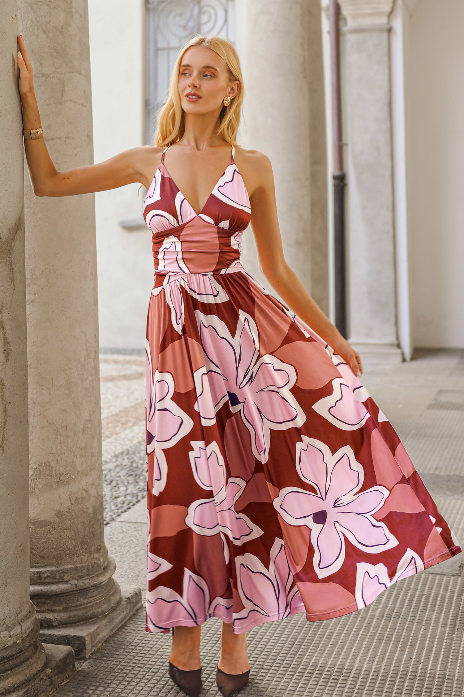 De Slow Dance Maxi-jurk straalt elegante energie uit! De diepe halslijn en het mouwloze design creëren een klassiek silhouet dat zeker indruk zal maken.